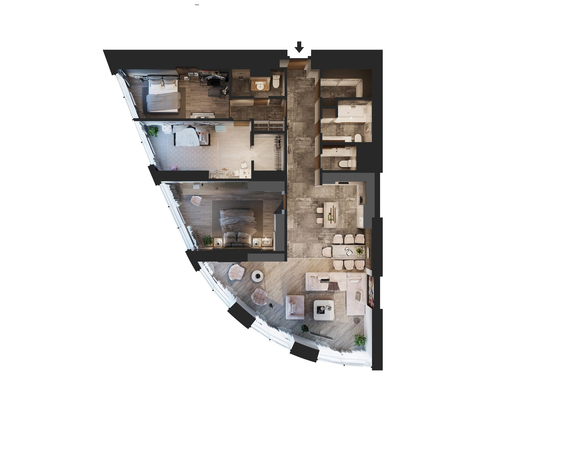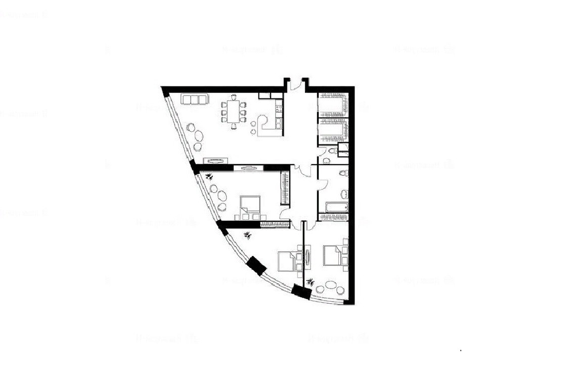 2. Свободная планировка, которая позволит реализовать множество дизайнерских идей по своему вкусу. Оптимально спланировать 3 изолированные комнаты, кухню-гостиную, 3 с/у, гардеробные и постирочную.