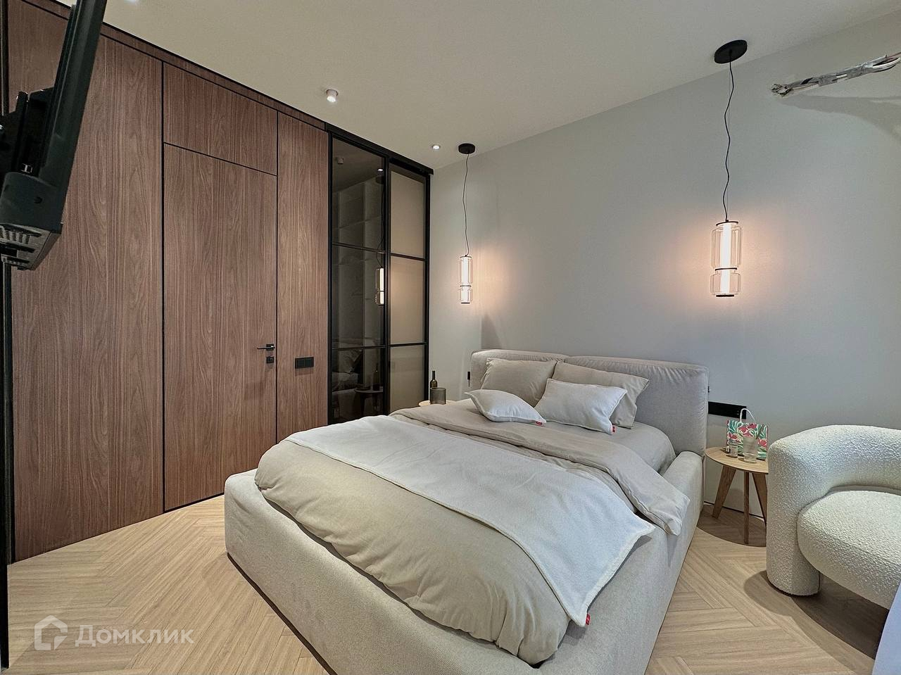 Планировка квартиры отлично продумана, в коридоре есть гардеробный шкаф под верхнюю одежду и гостевой санузел. Сделана кухня-гостиная с обеденной зоной и зоной отдыха. В спальне имеется собственная гардеробная с местом под стиральную и сушильную машины, а так же местом под робот пылесос и большой санузел с ванной. Вся мебель и декор подбирались дизайнером и останется для вас!