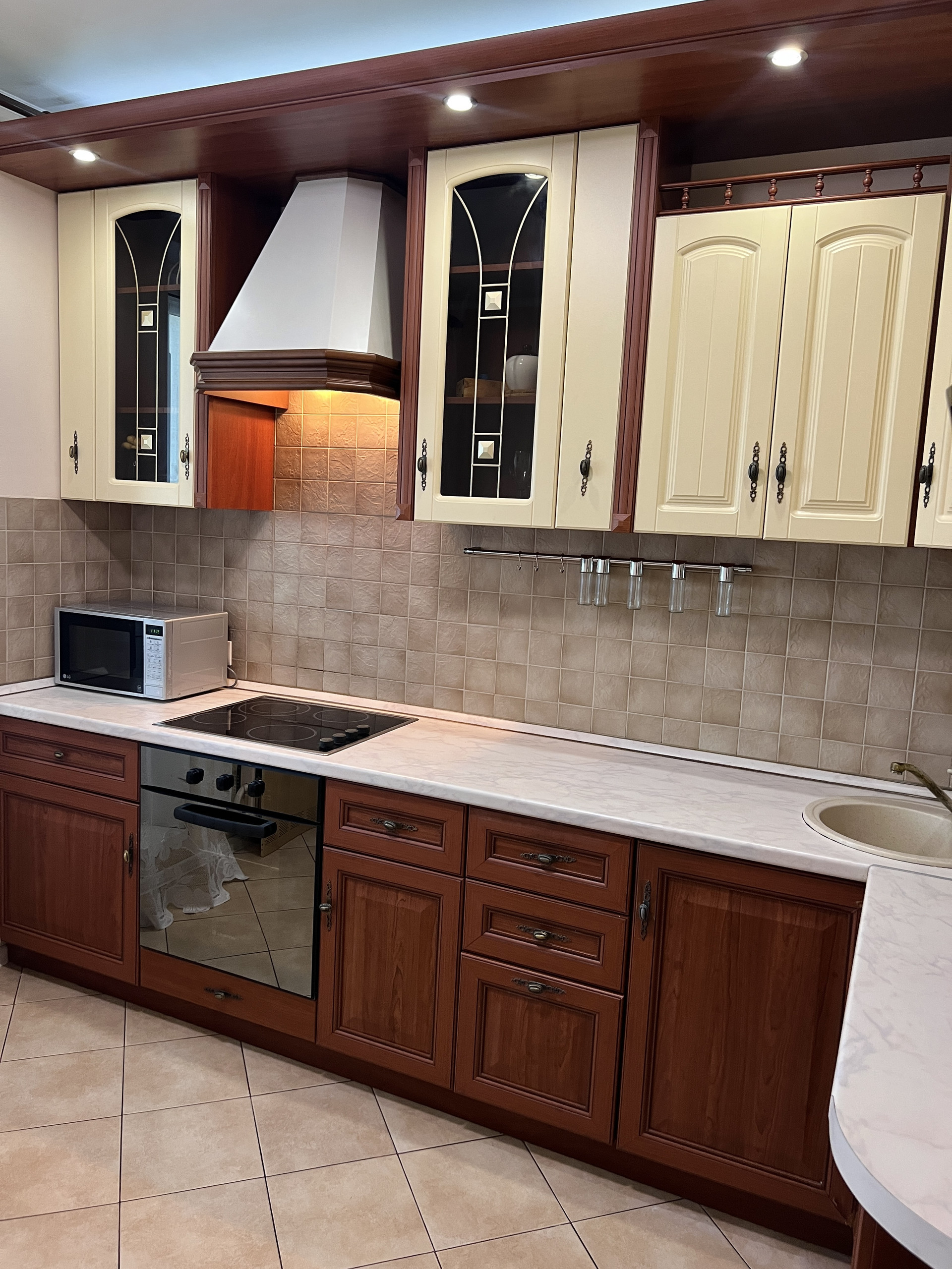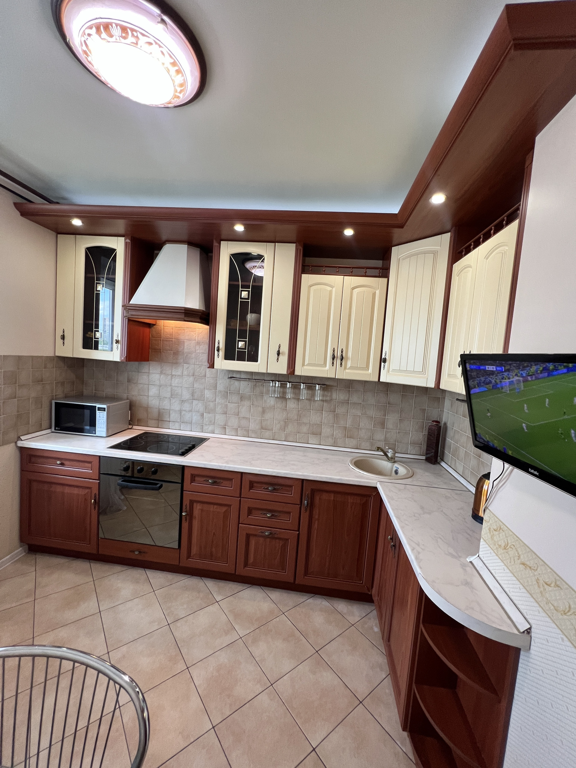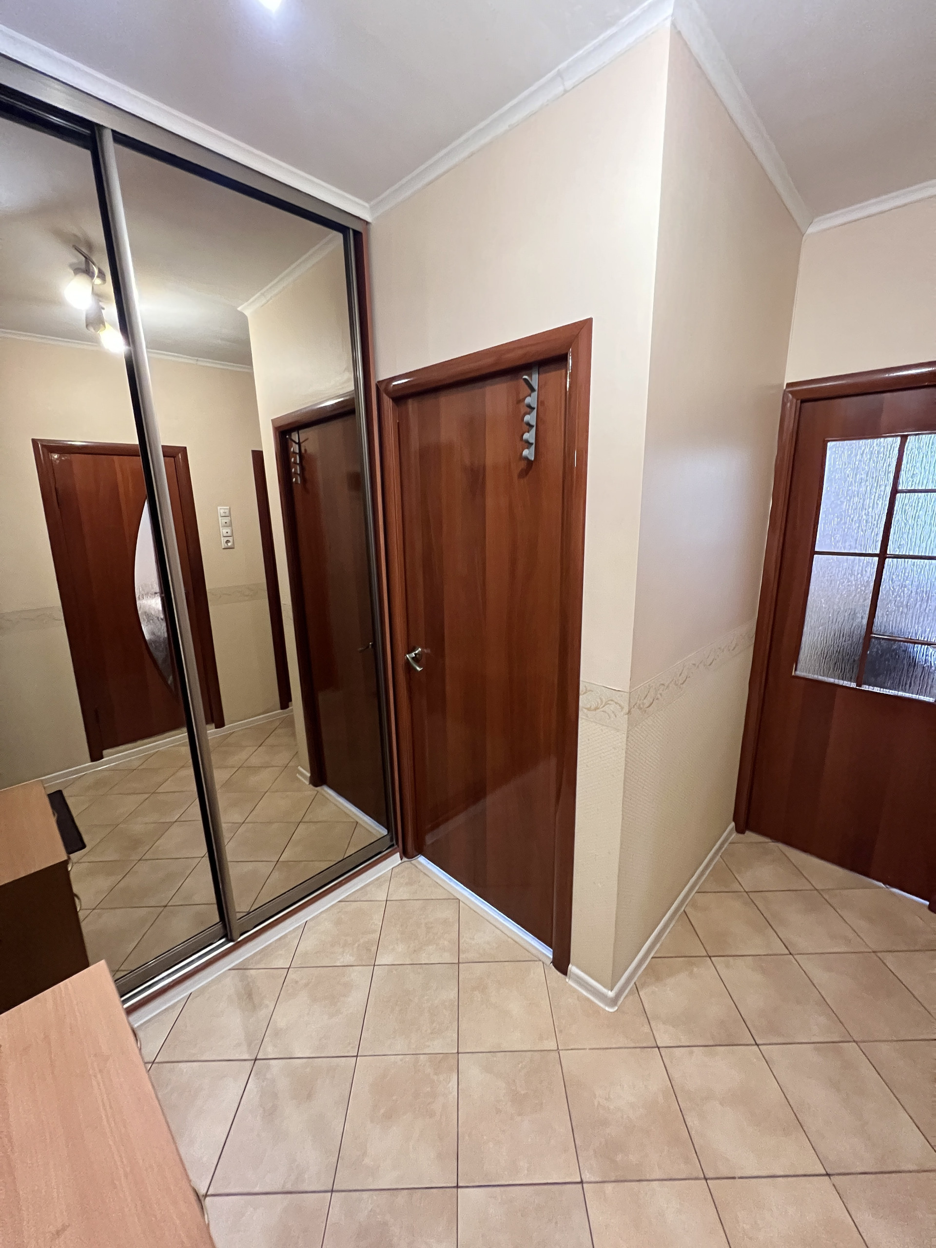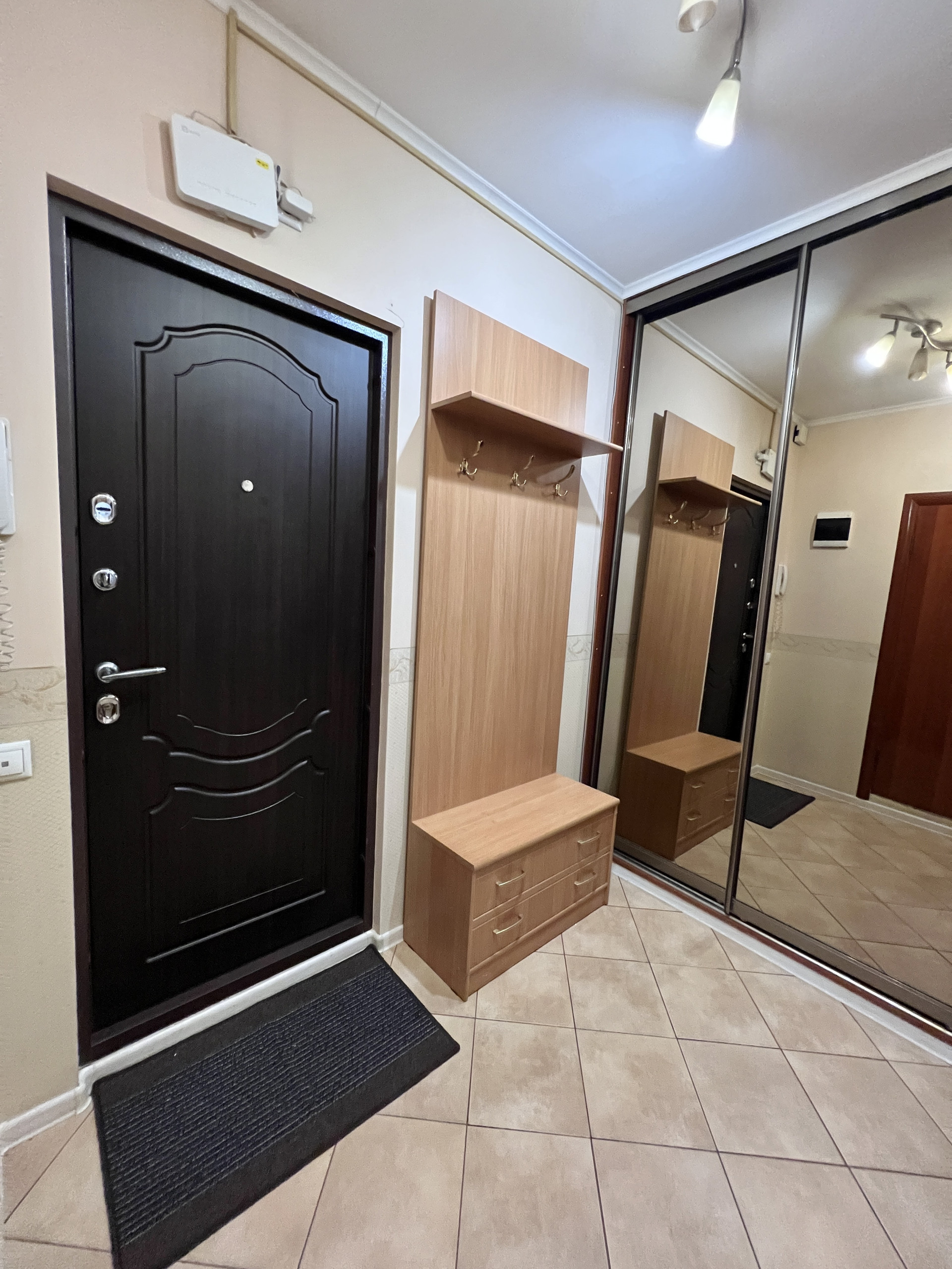 В прихожей глубокий шкаф купе, квартира с двумя утепленными лоджиями, стоят четырех камерные стеклопакеты. Кондиционер, гардеробная. Уютная кухня с бытовой техникой и со всем необходимым. Есть даже посуда, утюг, сушилка. Можно сразу под арендный бизнес.