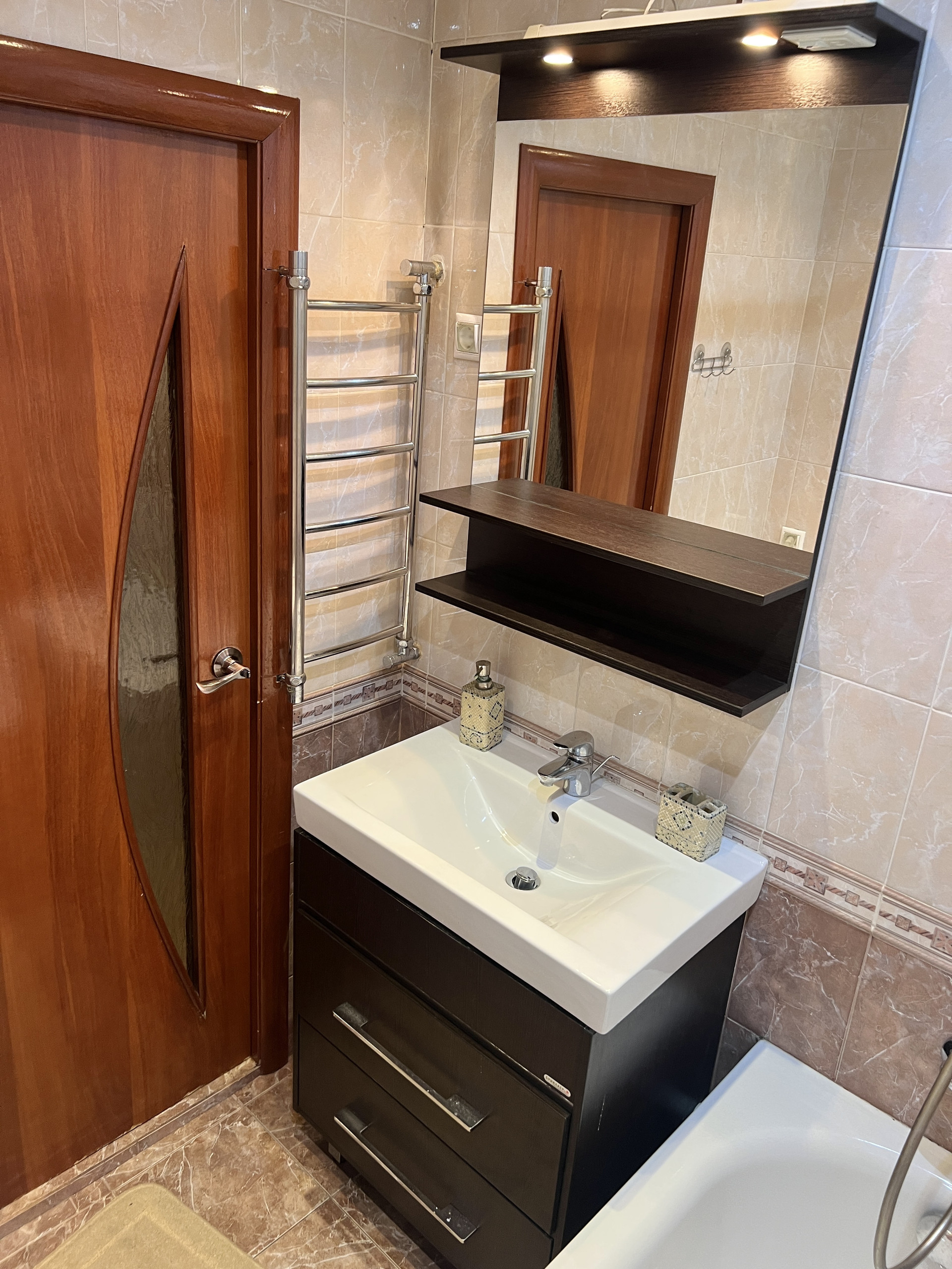 Санузел раздельный в кафеле, приятный ремонт, чистая квартира без любых живностей.