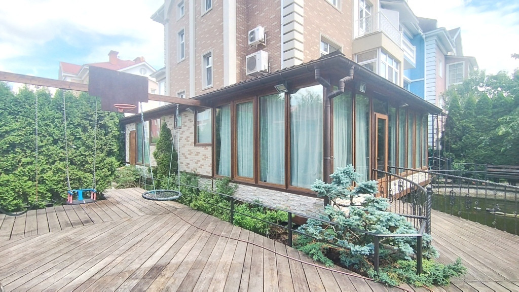 Предлагаем купить таунхаус в Северо-Западном округе г. Москвы, в районе Куркино, в двух километрах от МКАД по адресу: Куркинское шоссе дом 40, на закрытой охраняемой территории. Участок угловой, обособленный, закрытый от соседей. Таунхаус общей площадью 300 кв.м., 4-х этажный, потолки порядка 3-3.5 м. Магистральный газ, центральное водоснабжение и канализация, приточная вентиляция. На 1 этаже расположены: кухня, две комнаты, санузел, котельная, хамам, теплая беседка. На 2 этаже расположены: кухня-столовая, спальня, санузел. На 3-м этаже: три спальни, санузел. Полностью подготовлен под отделку 4 этаж, проведено отопление, кондиционирование, утеплены стены, установлено окно, обустроена удобная лестница. Таунхаус в отличном состоянии, с мебелью и необходимой бытовой техникой и сантехническим оборудованием. Земельный участок 3 сотки, благоустроен. На участке имеется пруд с различными видами рыб, детская игровая площадка, летний с подогревом от котла бассейн под навесом, приусадебный участок с высаженными плодовыми деревьями и кустарниками, навес под машину, по периметру растут порядка пятидесяти туй трех видов. Парковка на четыре машины. Солидные соседи. Въезд осуществляется через КПП со стороны улицы Воротынская и Куркинского шоссе.