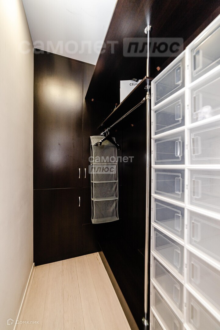 две комнаты, одна из которых спальня, вторая гостиная с кухней, один большой совмещенный санузел, один раздельный санузел ,гардеробная, просторный коридор. Окна квартиры выходят на разные стороны. Все окна видовые.