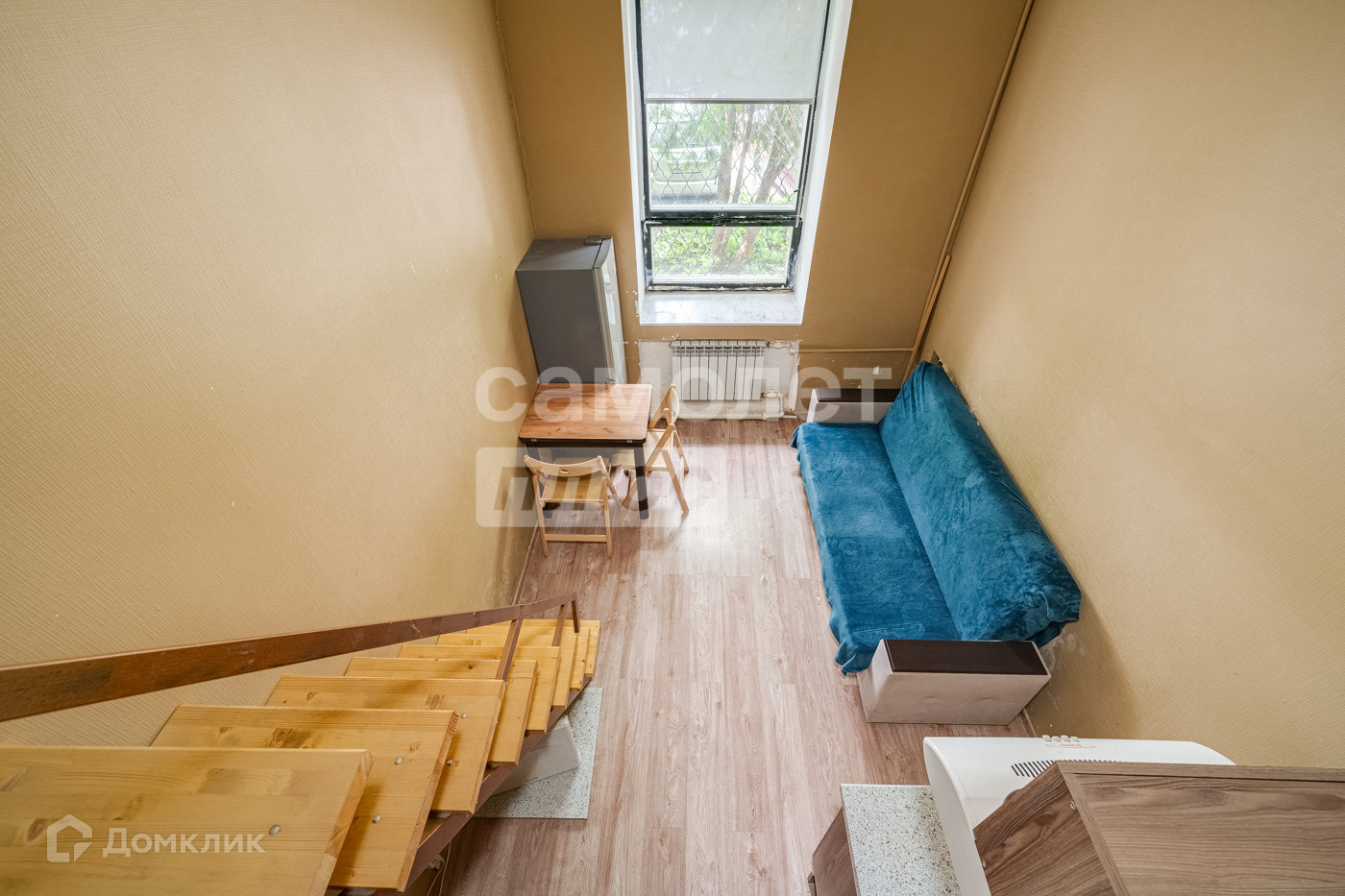 Двухуровневая студия, очень удобно для проживания со спальным местом на втором уровне.