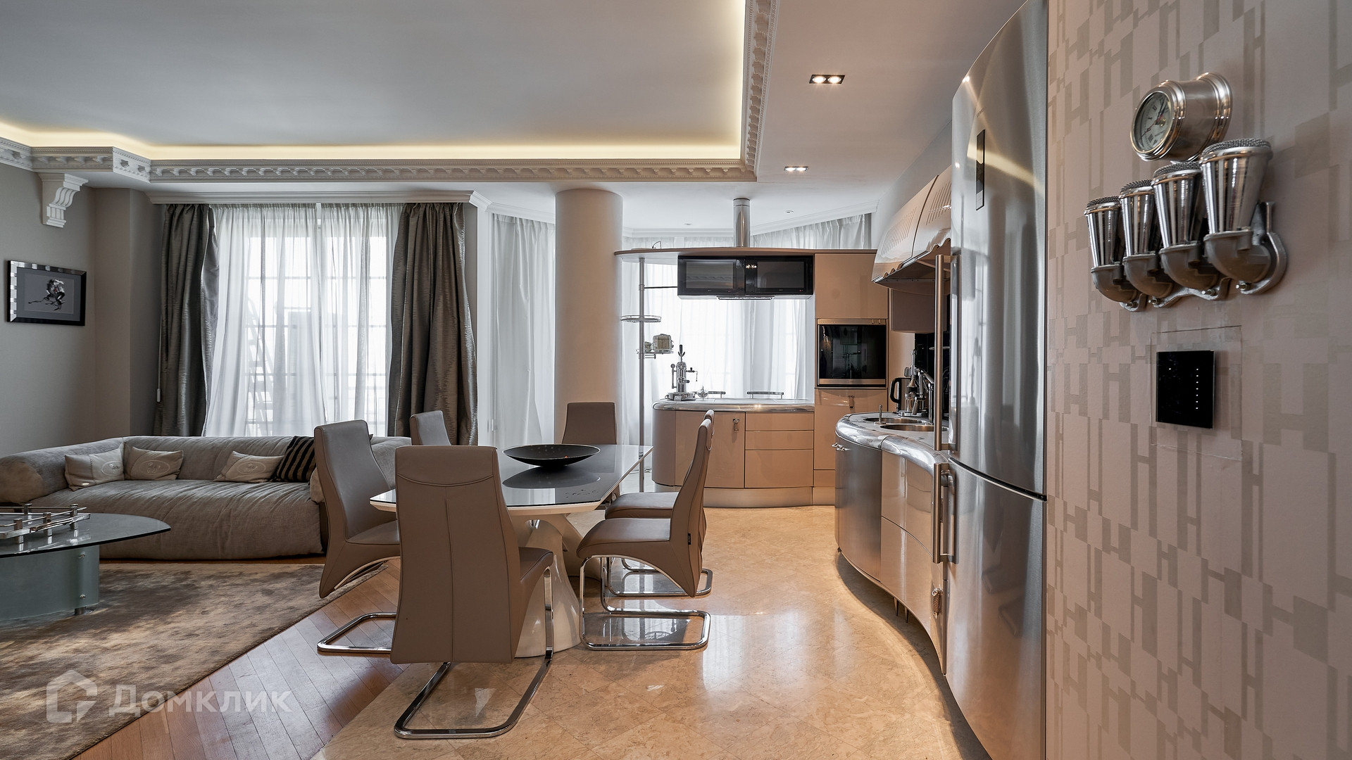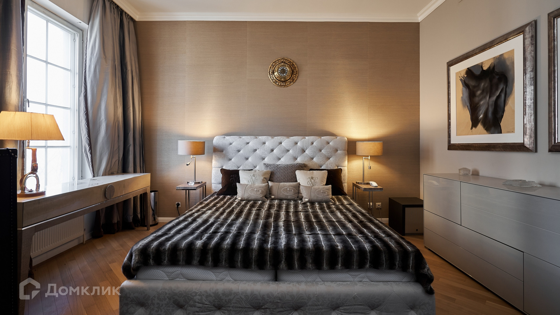 ID 144 913. Просторная квартира с 2-мя спальнями и действующим камином в клубном доме «Агаларов Хаус». Выполнен дизайнерский ремонт в современном стиле в светлых тонах. Установлена мебель Fendi. Планировка: просторная гостиная с зоной кухни, 2 спальни, 2 ванные комнаты, балкон- терраса. В гостиной оборудован камин, столовая зона , зона отдыха с мягкой мебелью. Есть 1 машиноместо в подземном паркинге.