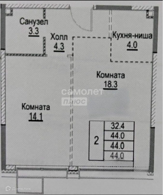Общая площадь 44 м2