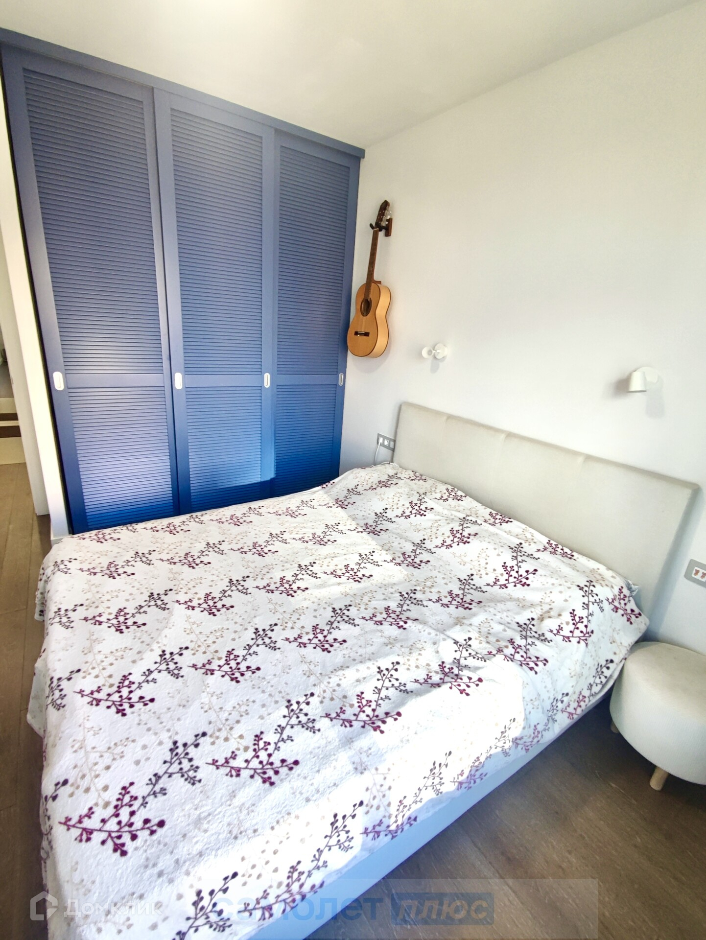 В спальне (13м2) установлен шкаф, двуспальная кровать.
