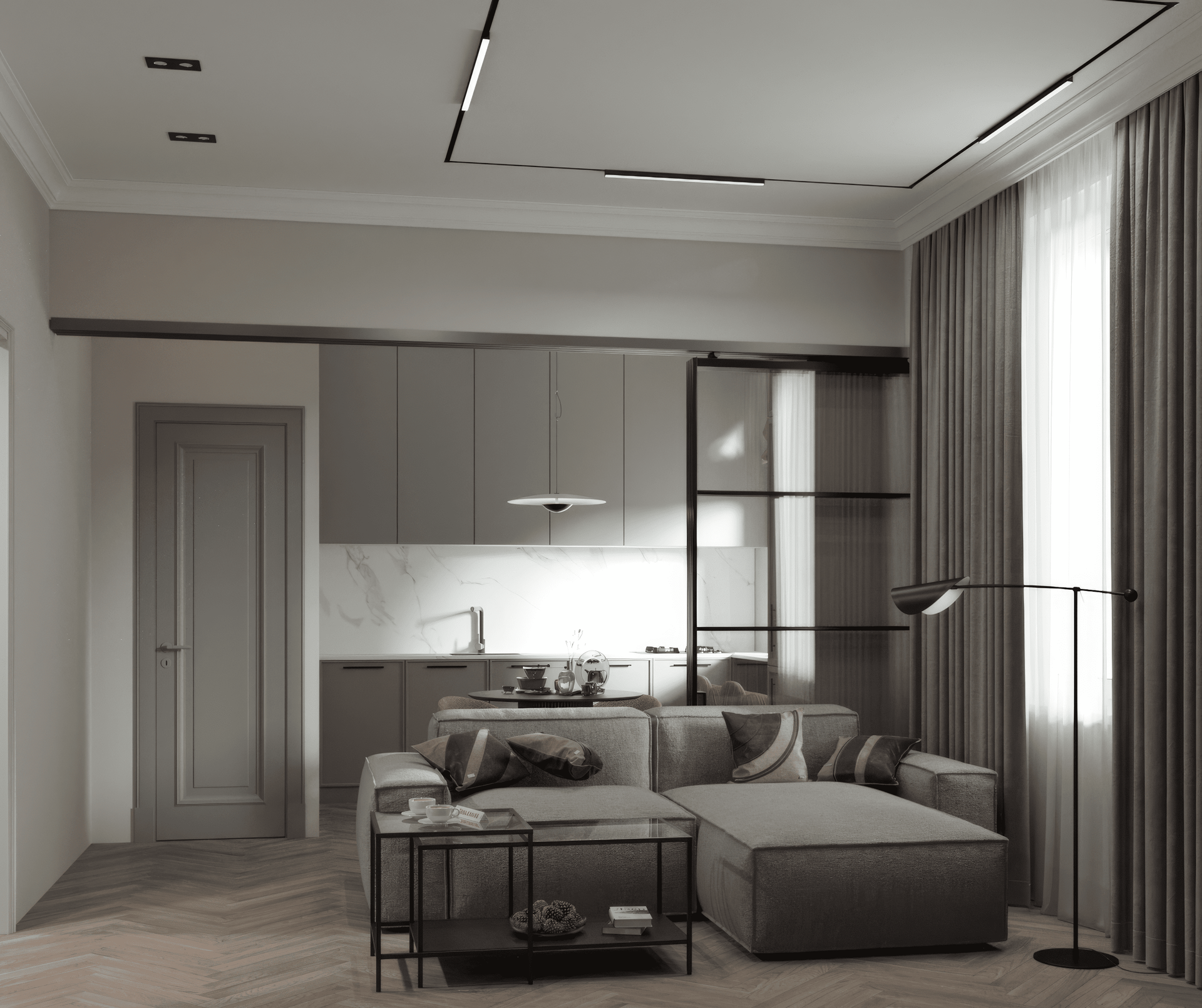 В квартире современная и очень функциональная планировка. Просторная кухня гостиная 24 м2, отдельная изолированная спальня 17 м2 с отдельной большой гардеробной 5 м2, объединений просторный сан узел с постирочной зоной. Все новое, никто не жил! Планировка согласована.