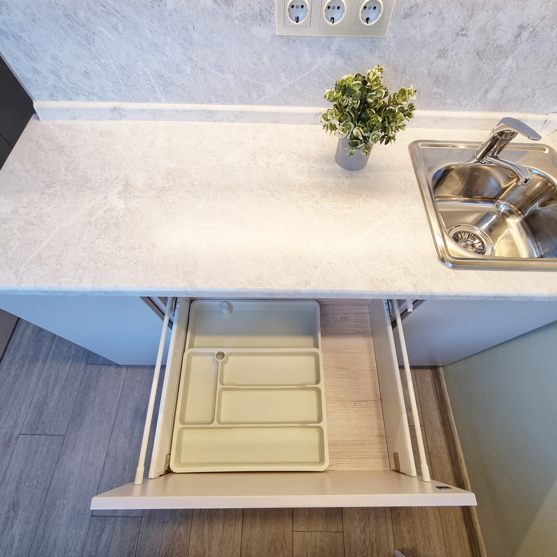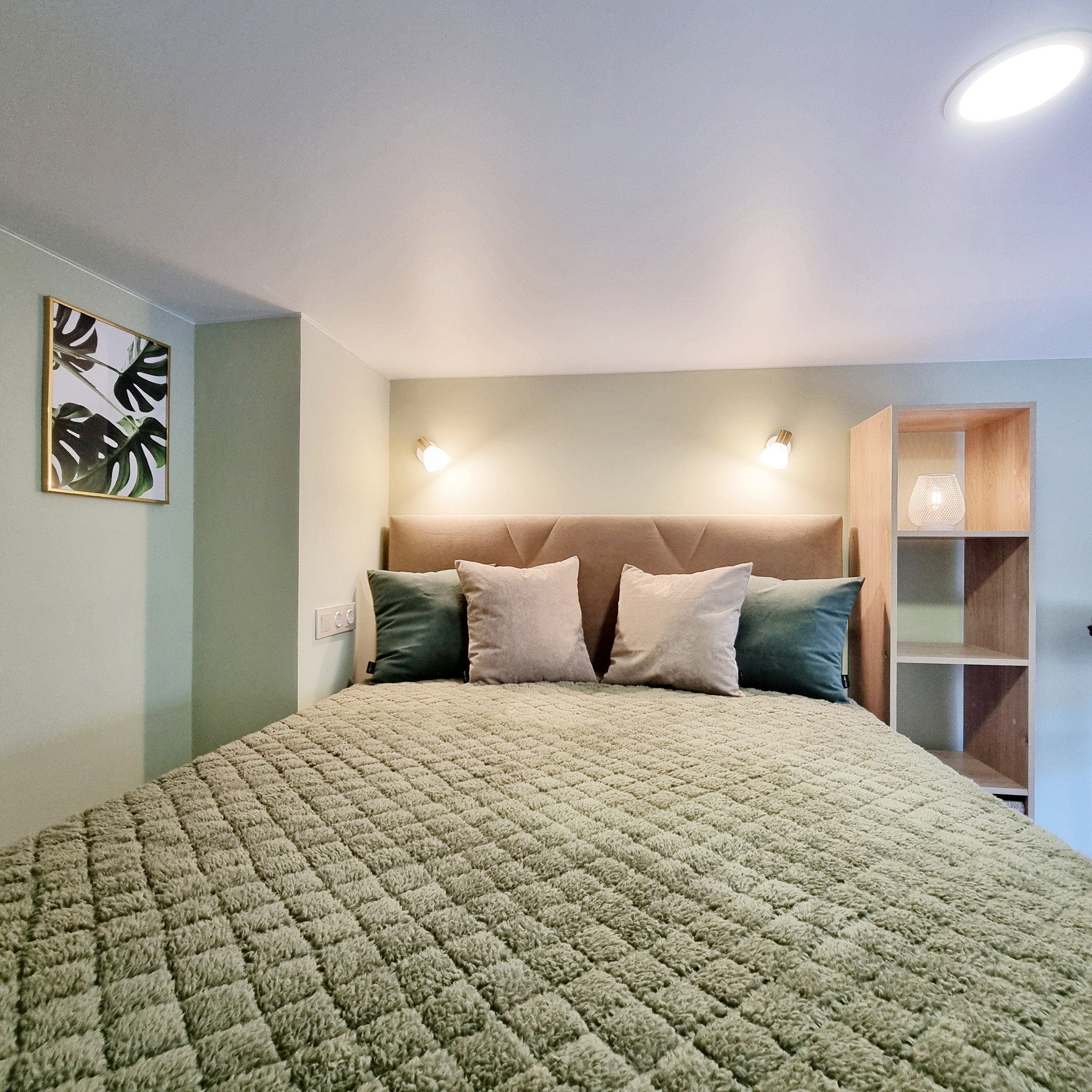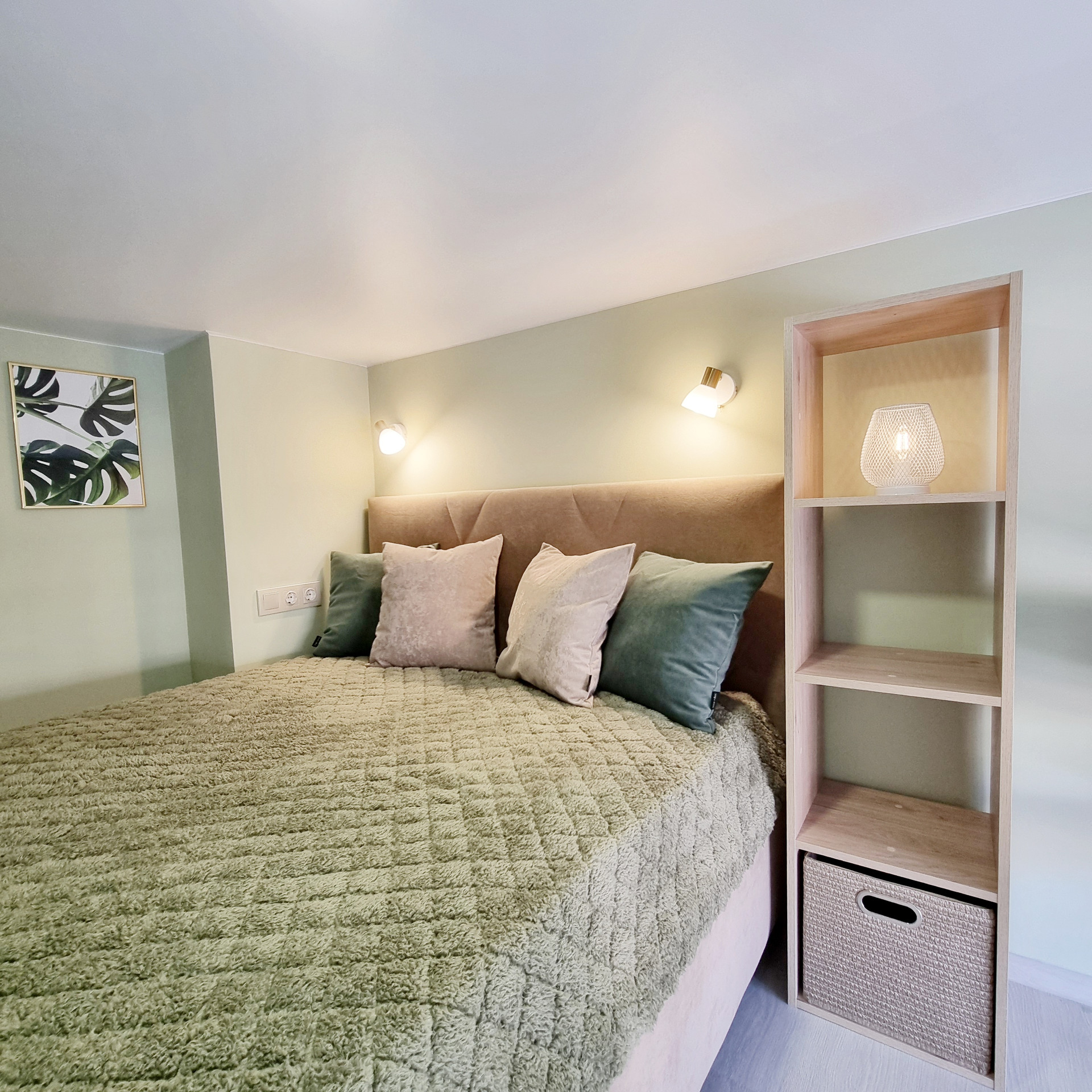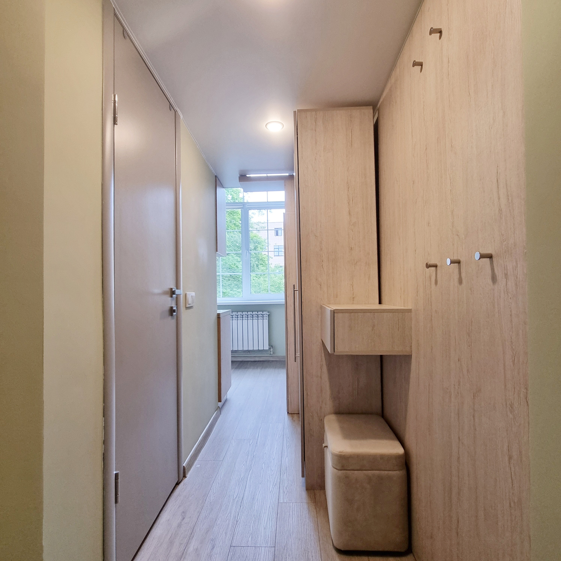 Благодаря специально разработанному дизайну мебели, в студии предусмотрено много удобных мест для хранения. В прихожей двустворчатый шкаф, консоль с выдвижным ящиком, пуфик с ящиком для хранения. Лестница на второй уровень организована, как дополнительные места хранения. Продумано даже, если новому хозяину будет нужен большой холодильник, он сможет с лёгкостью поменять имеющийся, на холодильник большего размера, сняв полки в шкафу. На втором этаже полноценная кровать с подъёмным механизмом и с ящиками для хранения и новым ортопедическим матрасом средней жёсткости, 140х200. Стеллаж с ящиком. Большой письменный стол для занятий и/или работы. В студии предусмотрены компактные табуреты и стул одинаковой конструкции, чтобы при необходимости их можно было легко штабелировать. Много разных решений освещения. На каждой створке окна установлена своя рулонная штора, что очень удобно, для регулирования приватности или освещённости Вашего пространства.