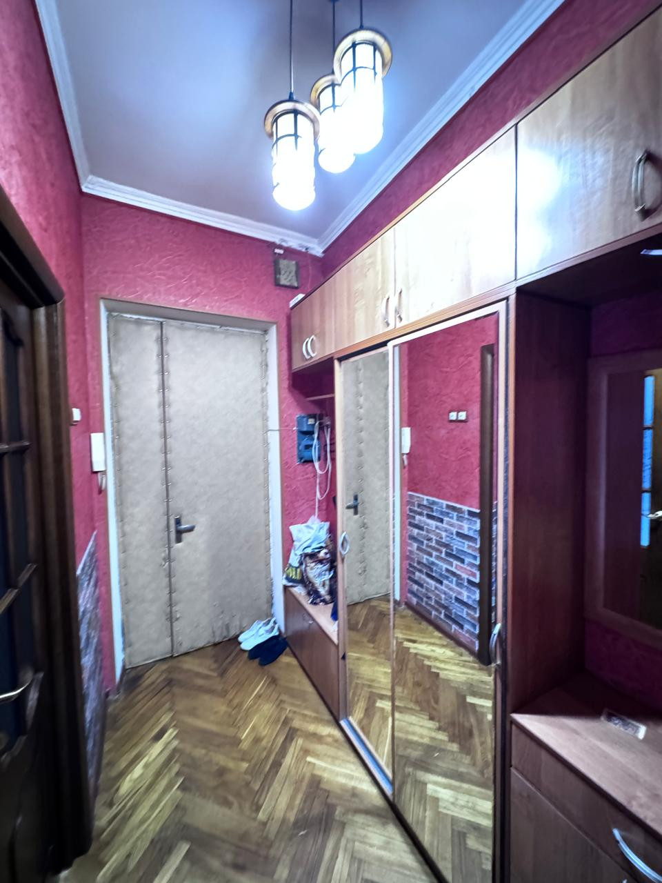 В квартире две изолированные комнаты, одна из них с выходом на балкон. Квартира расположена так удачно, что ни  одно окно не выходит на улицу. Есть отдельная гардеробная, большая прихожая.