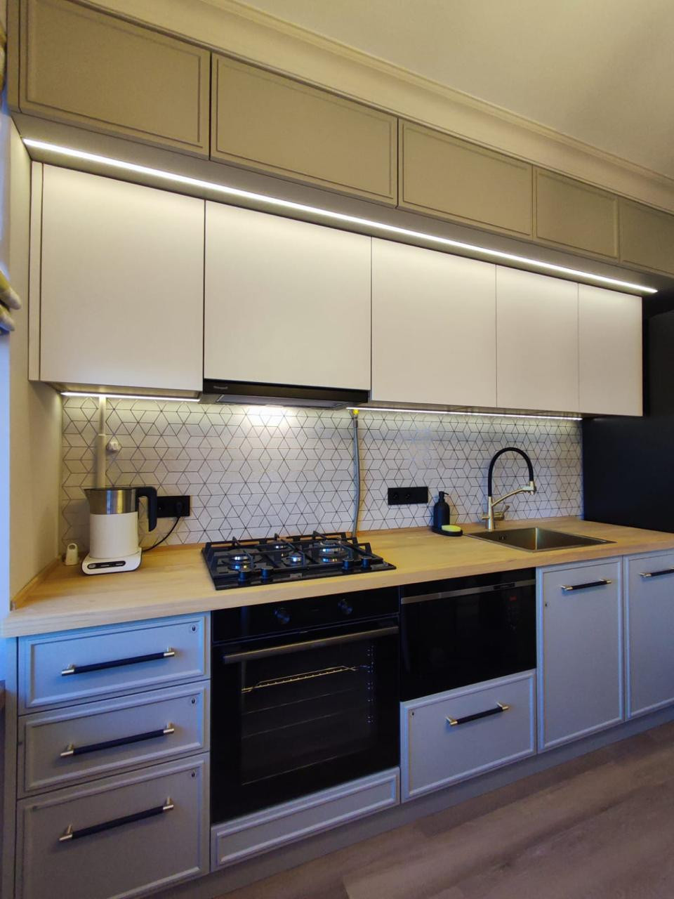 Установлены окна Rehau, заменена полностью проводка, пол - кварцвинил, сантехника Gappo, в санузле и на кухне керамогранит (Италия\Испания), кухня МДФ по индивидуальному проекту со встроенной техникой (духовой шкаф Gorenje, газовая варочная панель Samtron HG, СВЧ Hansa, ПММ Monsher, вытяжка Weissgauff, холодильник Gorenje), столешница и подоконники - массив дуба, встроенные шкафы - по индивидуальному проекту на заказ, итальянские шторы, установлена металлическая входная дверь.
