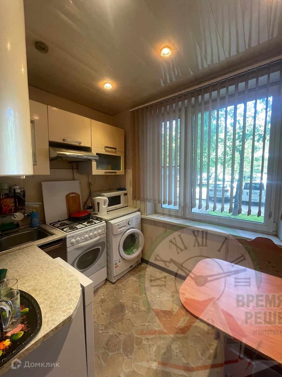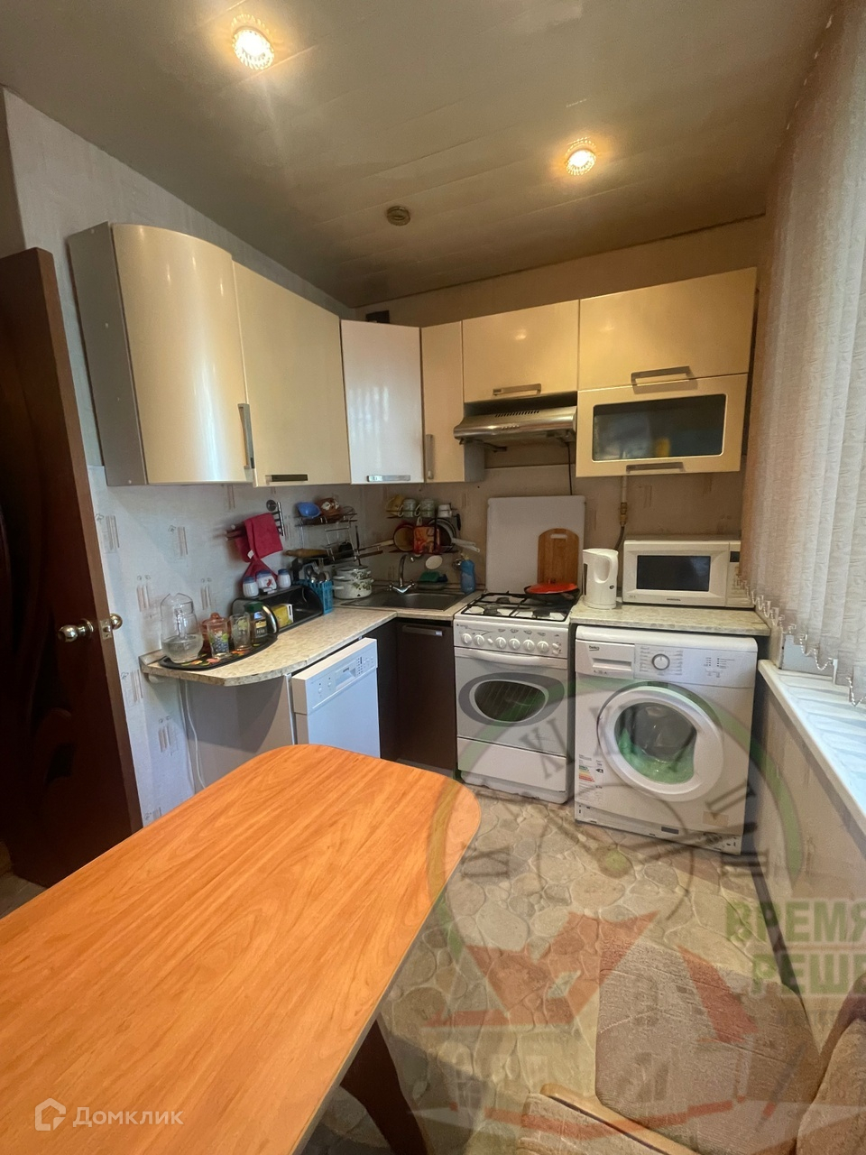 Квартира меблирована. Кухня укомплектована не только кухонной мебелью, но и всей необходимой техникой: холодильник, посудомоечная машина, микроволновая печь. Стиральная машина тоже есть!