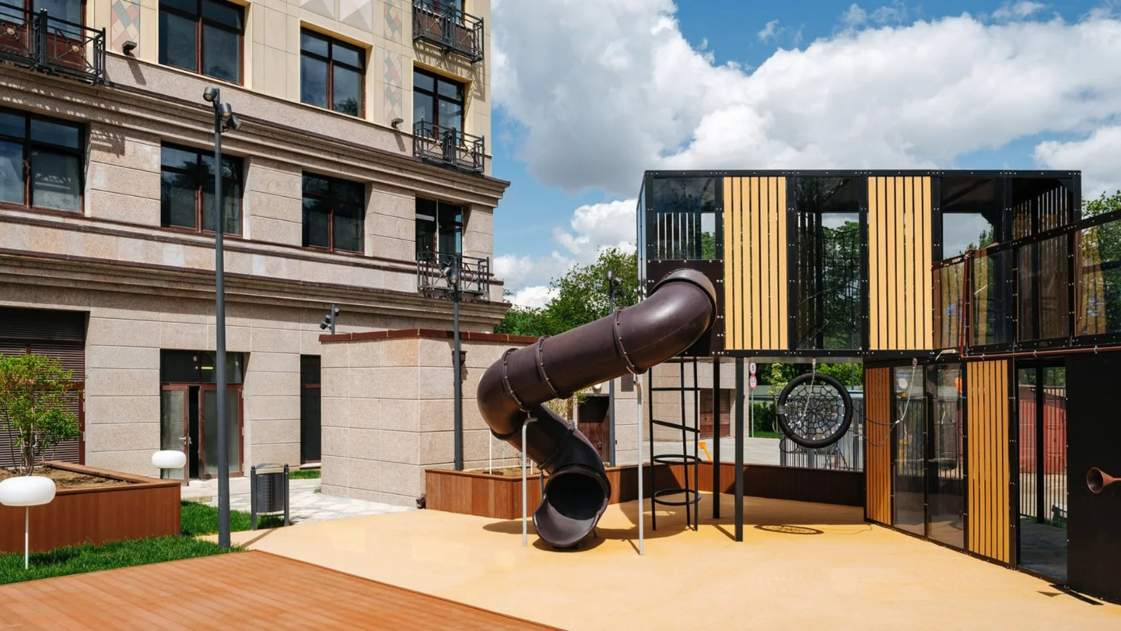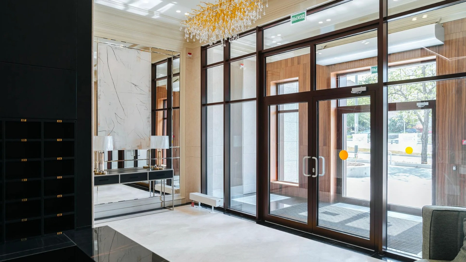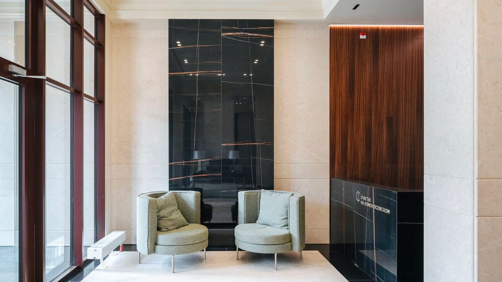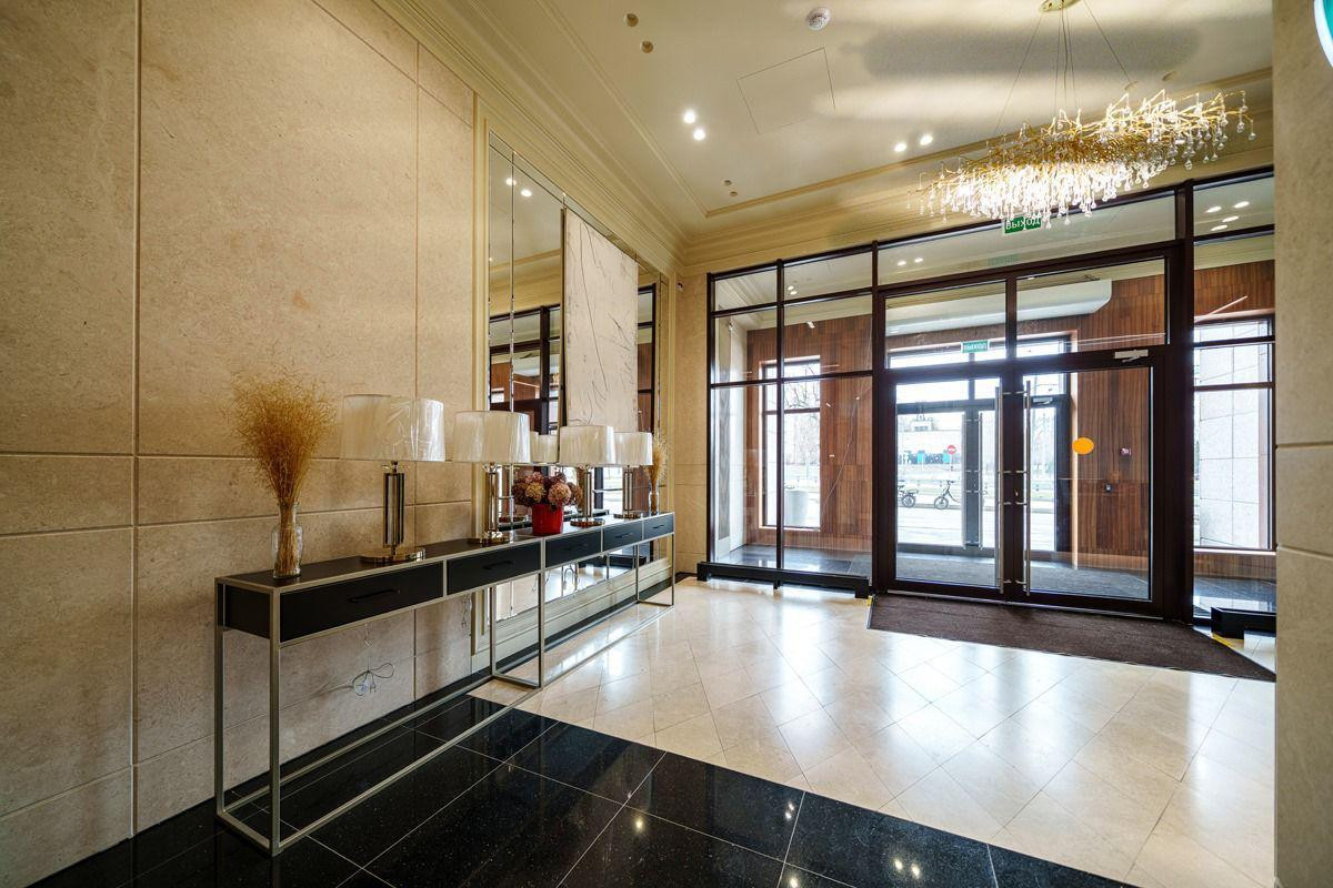 Входная группа клубного дома выполнена по дизайн-проекту бюро Glеkеl&Раrtnеrs. В оформлении использованы натуральные материалы, мрамор и панели из ценных пород дерева. В лобби расставлена мягкая удобная мебель. Прямо из лобби можно пройти во внутренний двор, он оборудован игровой площадкой с безопасным покрытием и местами отдыха. В специальной кладовой на первом этаже можно оставить детскую коляску и другое габаритное или сезонное имущество. Периметр дома находится под круглосуточным видеонаблюдением, войти в клубный дом могут только резиденты и их гости.