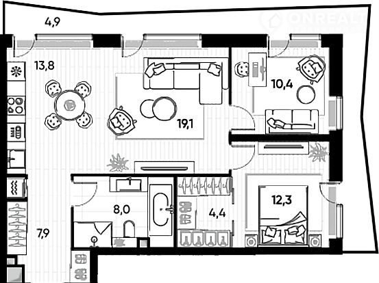 Общая площадь 80.8 м2