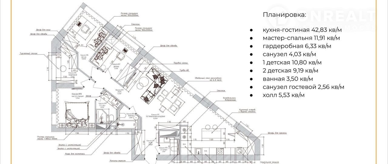 ● кухня-гостиная 42,83 кв/м