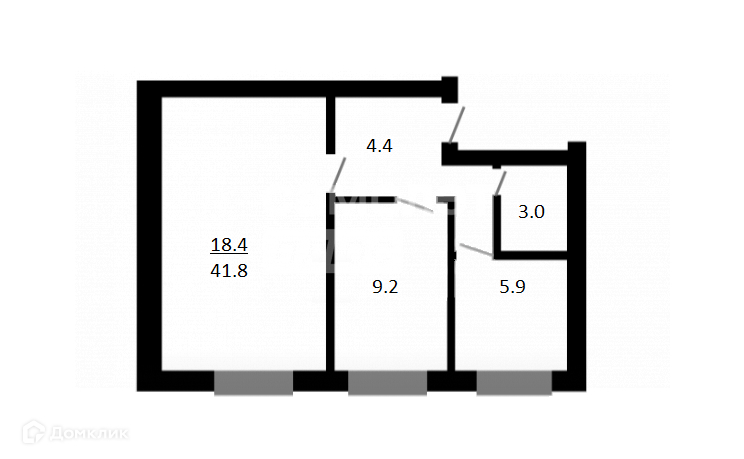 Общая площадь 41.8 м2