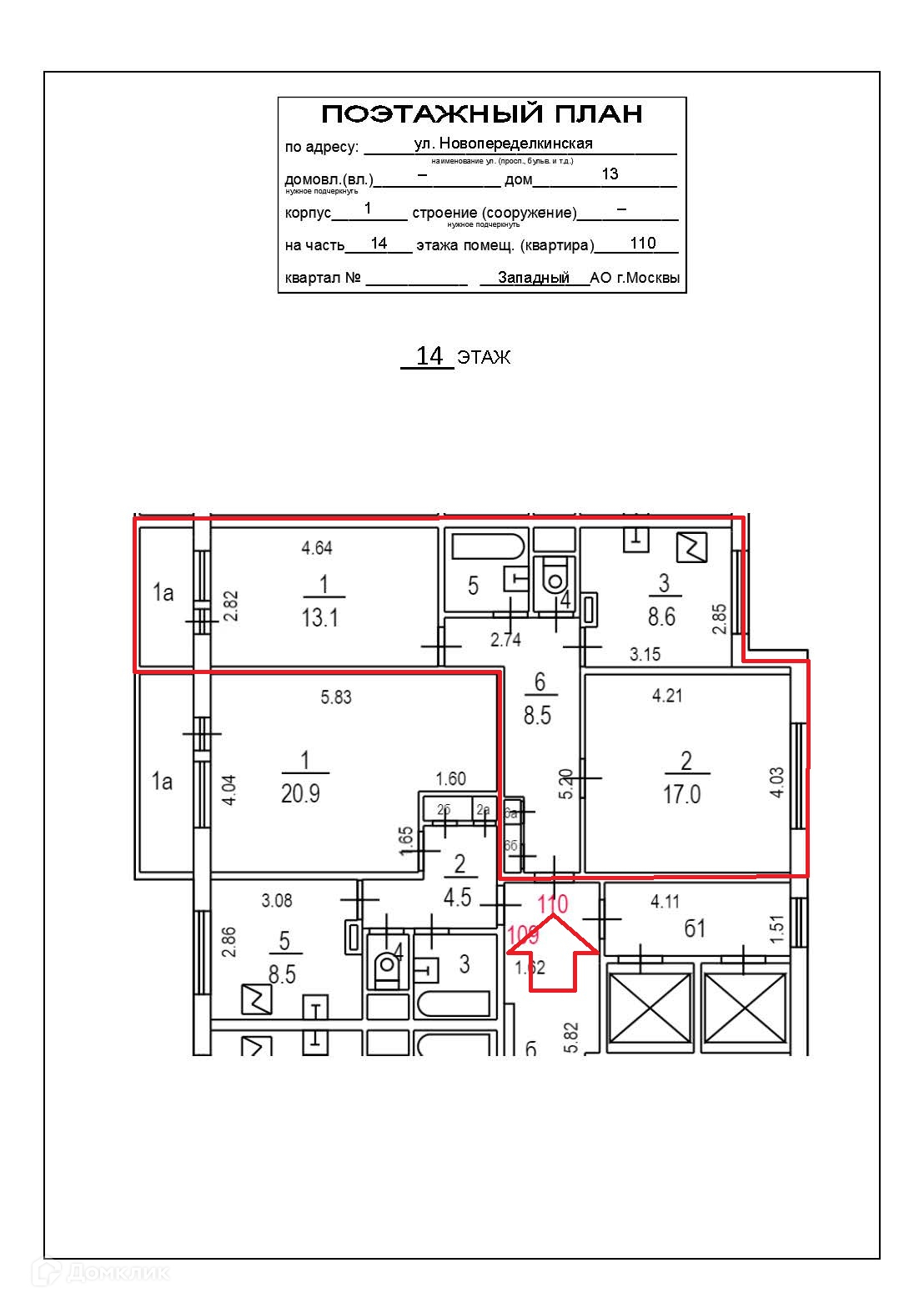 2-комнатная квартира, 51.7 м2, этаж 14 / 14, на продажу в Москве, Новопеределкинская улица, 13