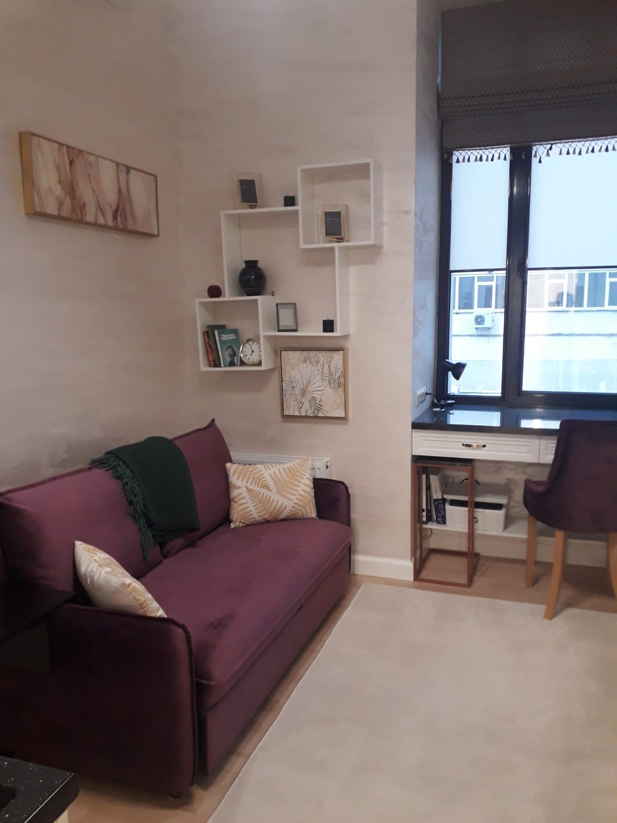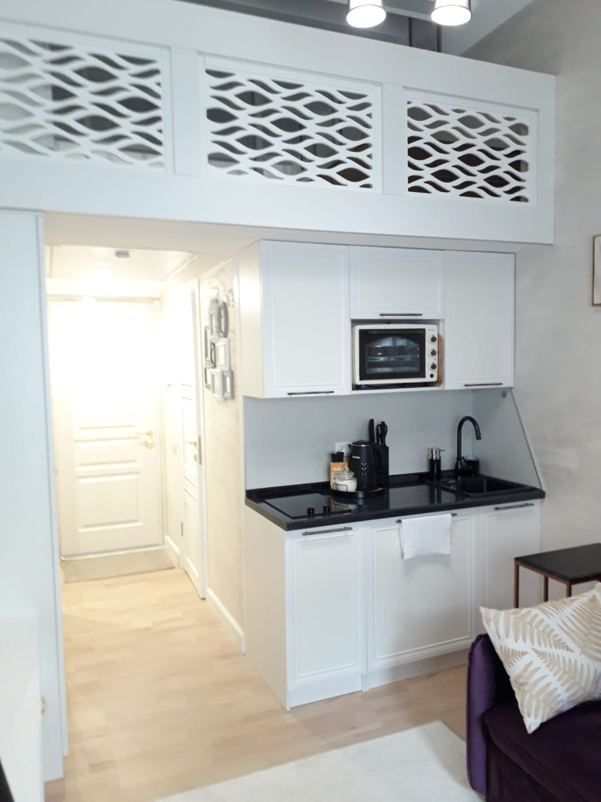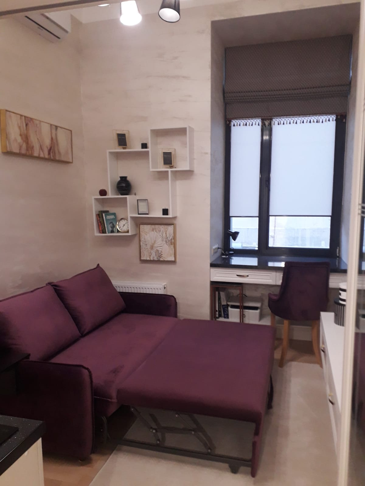 Апартаменты в жилом комплексе Лофт.фм, Таганский район. Студия спланирована и выполнена как мини-квартира, в которой может разместиться семья из 3-х человек. Также прекрасно подойдет студентам на период обучения. Много мест хранения (шкафы, тумбы), есть вся необходимая бытовая техника (эл/плита, холодильник Boch, духовка, стиральная машина, пылесос, кондиционер, водонагреватель, телевизор), удобный рабочий стол. На  антресоли  можно разместить кровать или диван или матрас. Сейчас на антресоли 1-спальный мартас.