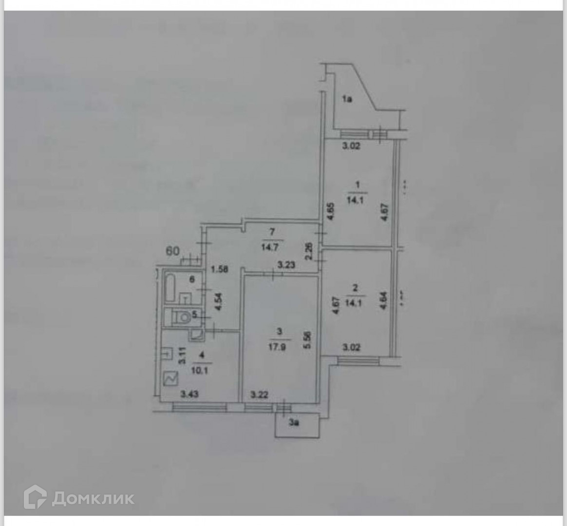 Жилая площадь 46.1 м2