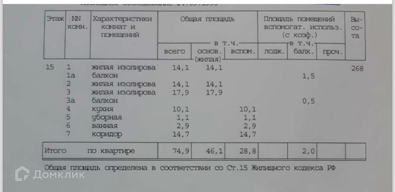 Общая площадь 74.9 м2