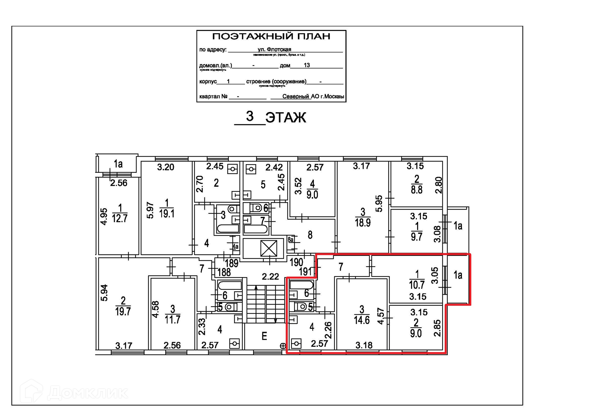 3-комнатная квартира, 49.6 м2, этаж 3 / 9, на продажу в Москве, Флотская улица, 13к1