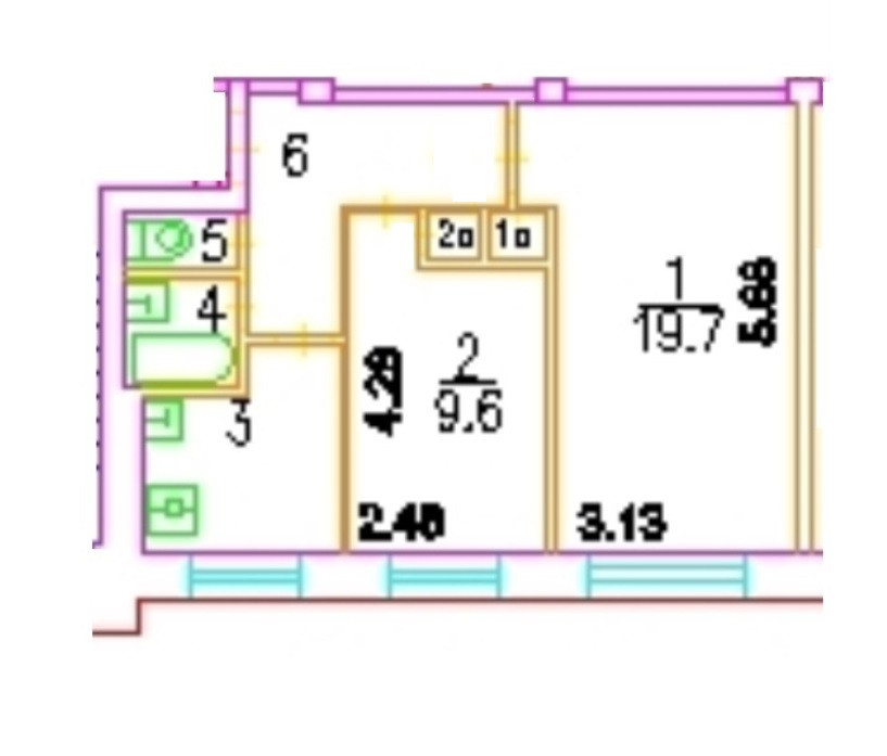 Общая площадь 42.6 м2