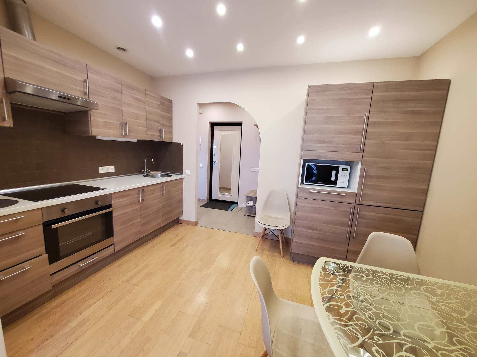 Дом с отличной звукоизоляцией и теплоизоляцией, поэтому в квартире всегда будет комфортно. Квартира с дизайнерским ремонтом, выполненным в светлых тонах.