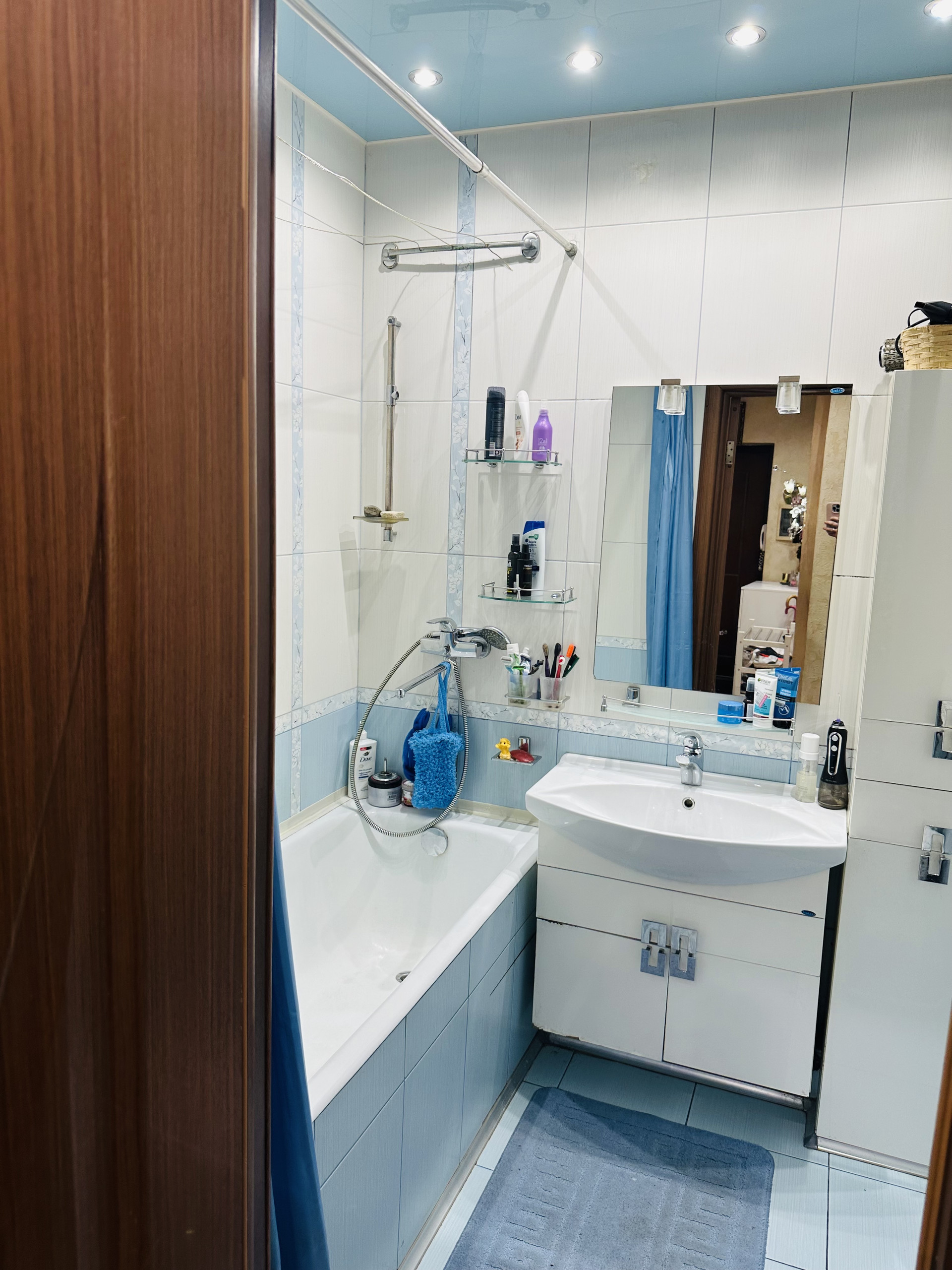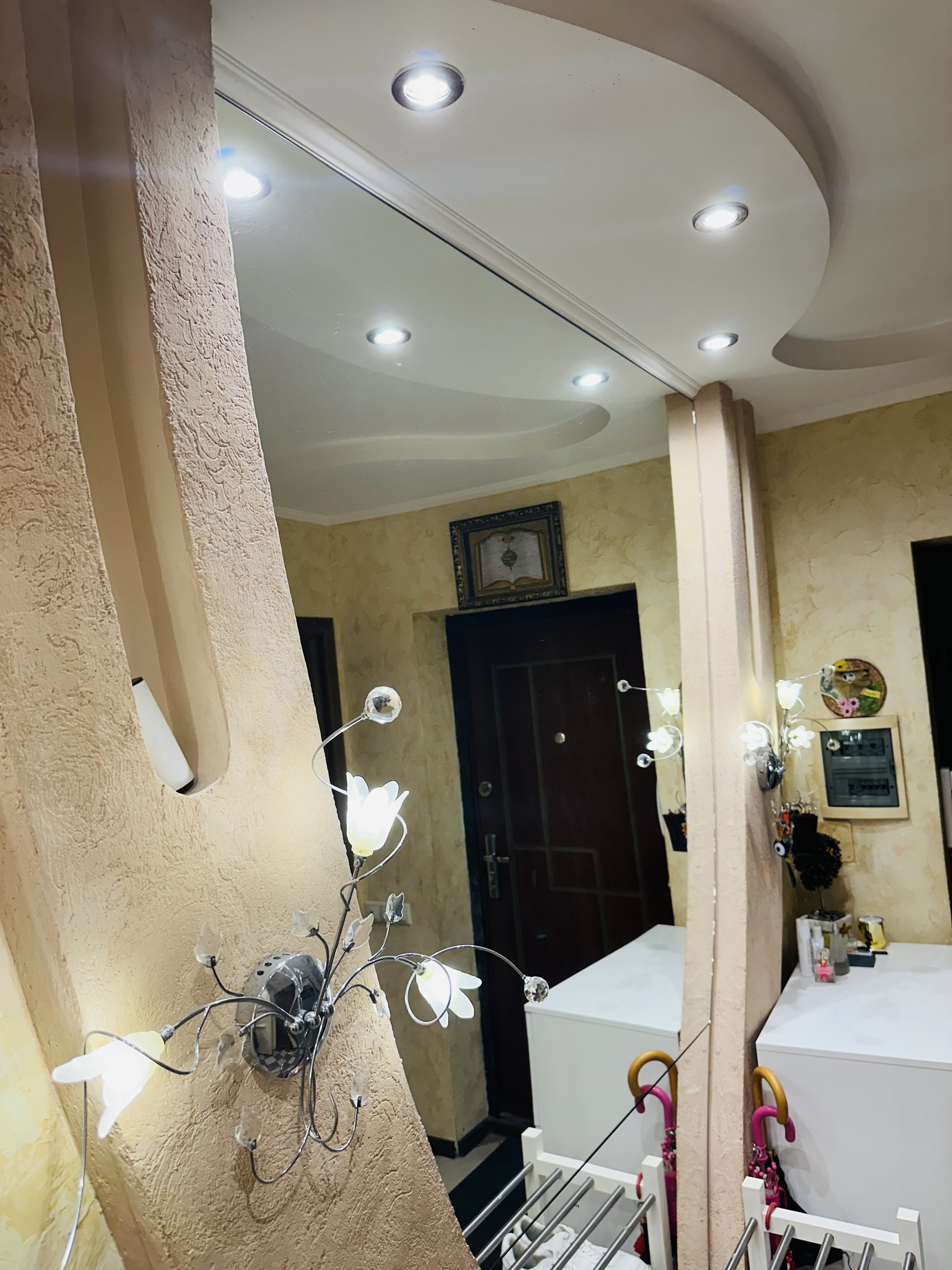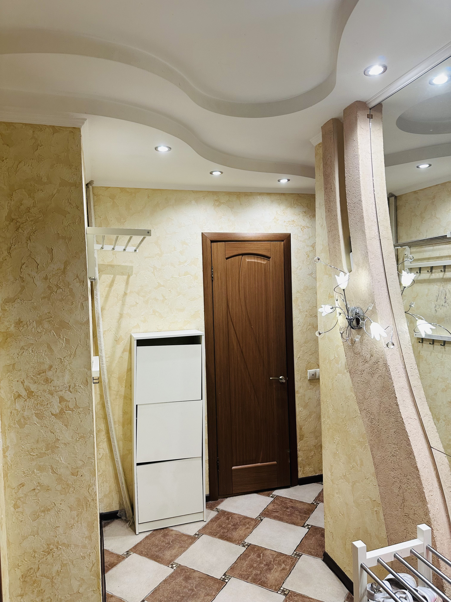 Комнаты раздельные (изолированные) 18 кв.м. и 12,2 кв.м., санузлы раздельные, хорошая сантехника, плитка, счетчики установлены, просторный холл с большим зеркалом, европотолки с подсветкой.