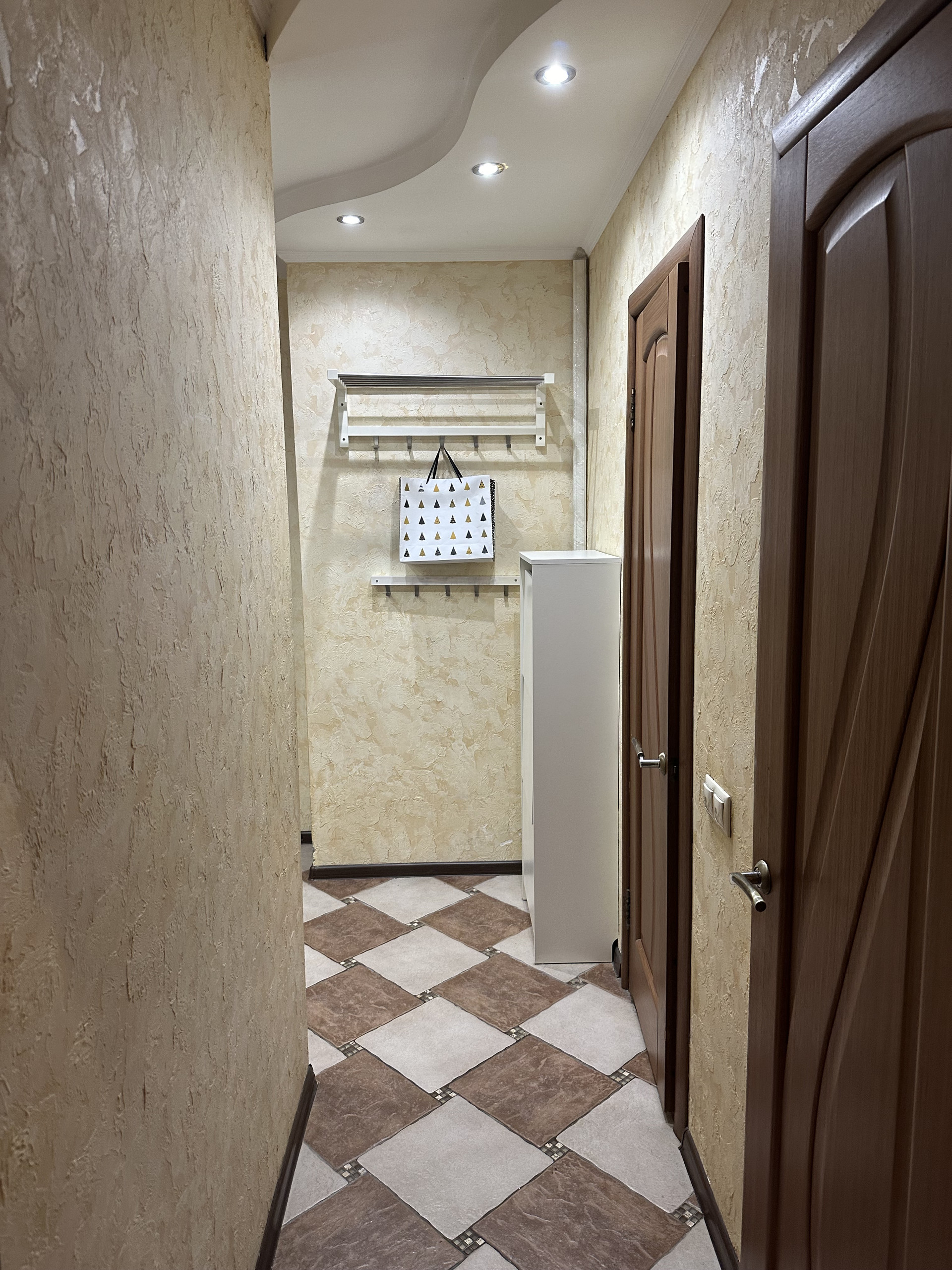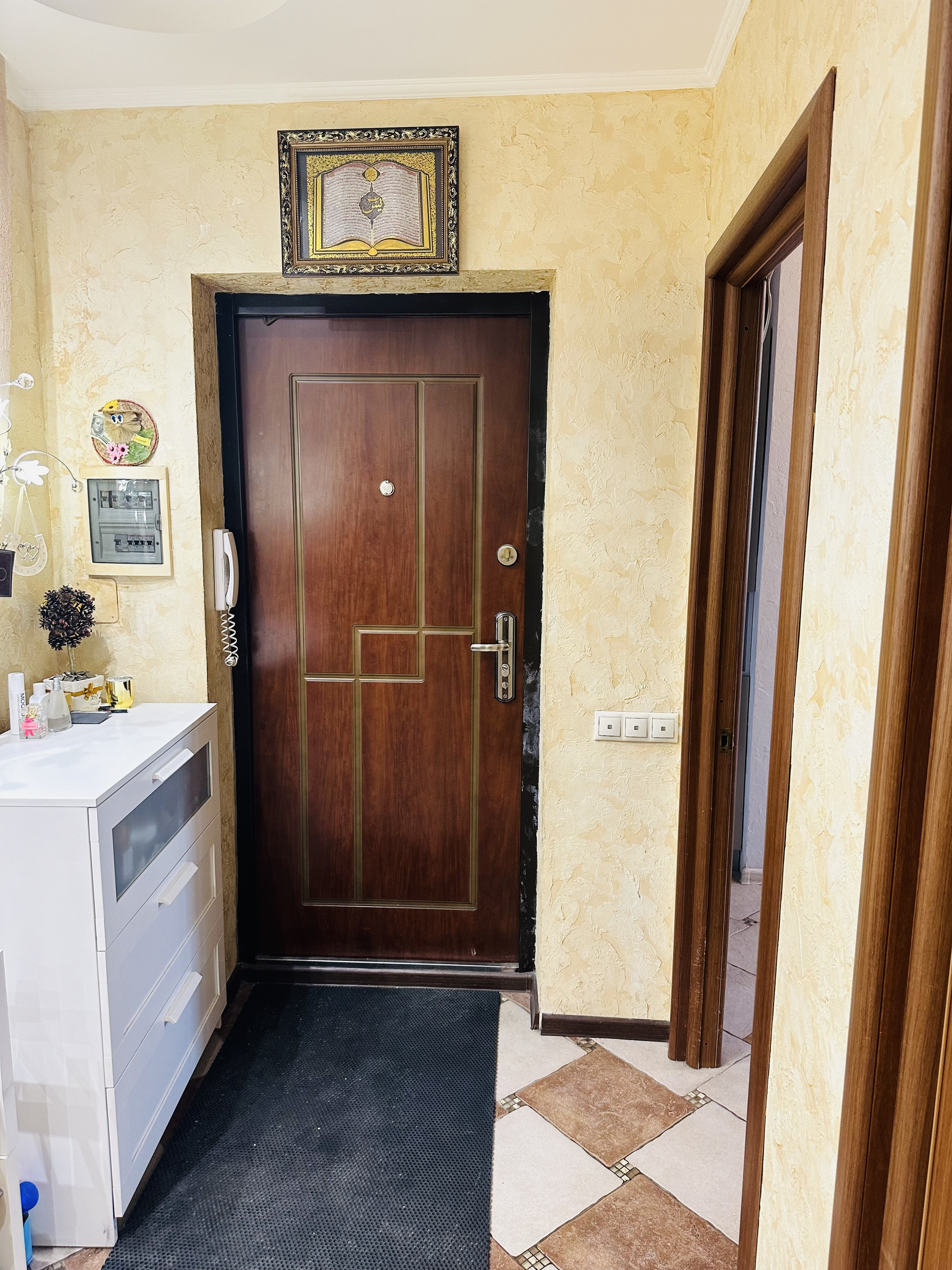 Большой тамбур на 4 квартиры с соседями, стоит свой хозяйственный стеллаж.