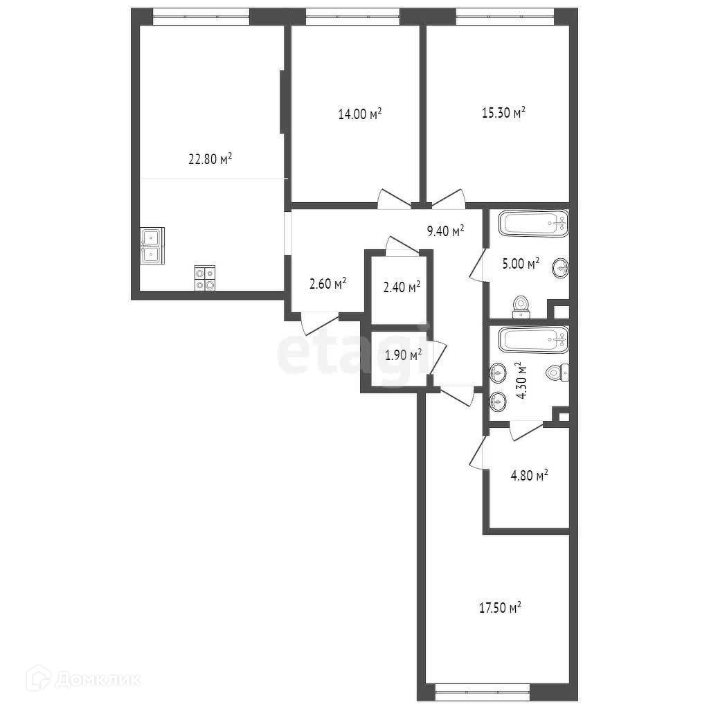 Площадь кухни 22.8 м2