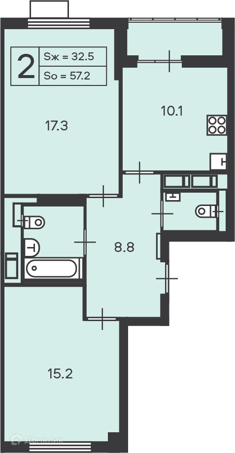 Общая площадь 57.2 м2