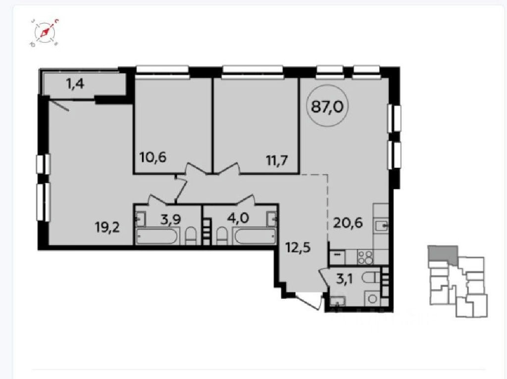 Общая площадь 87.4 м2