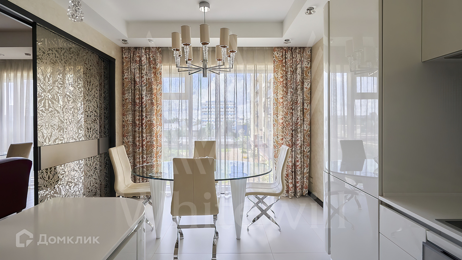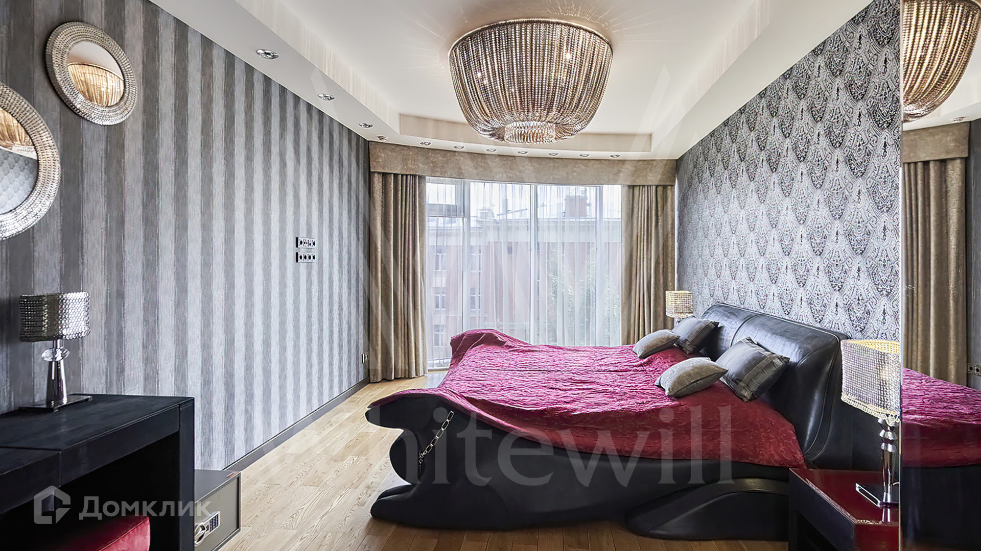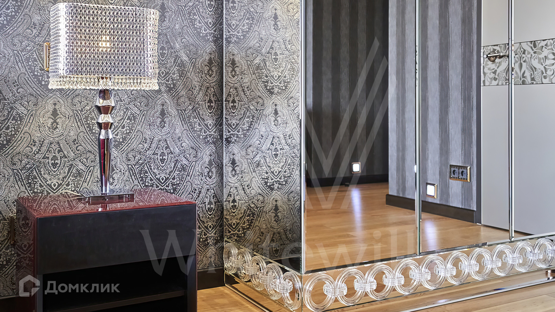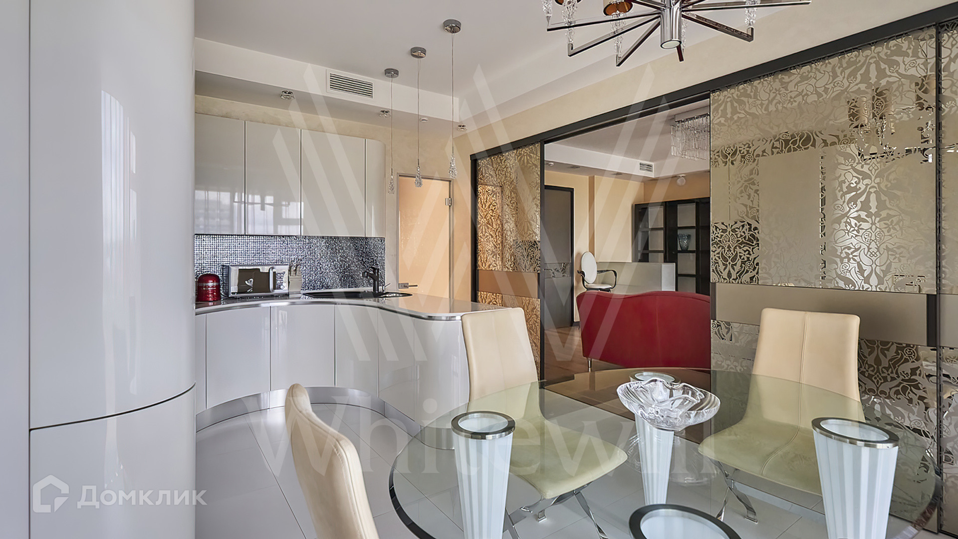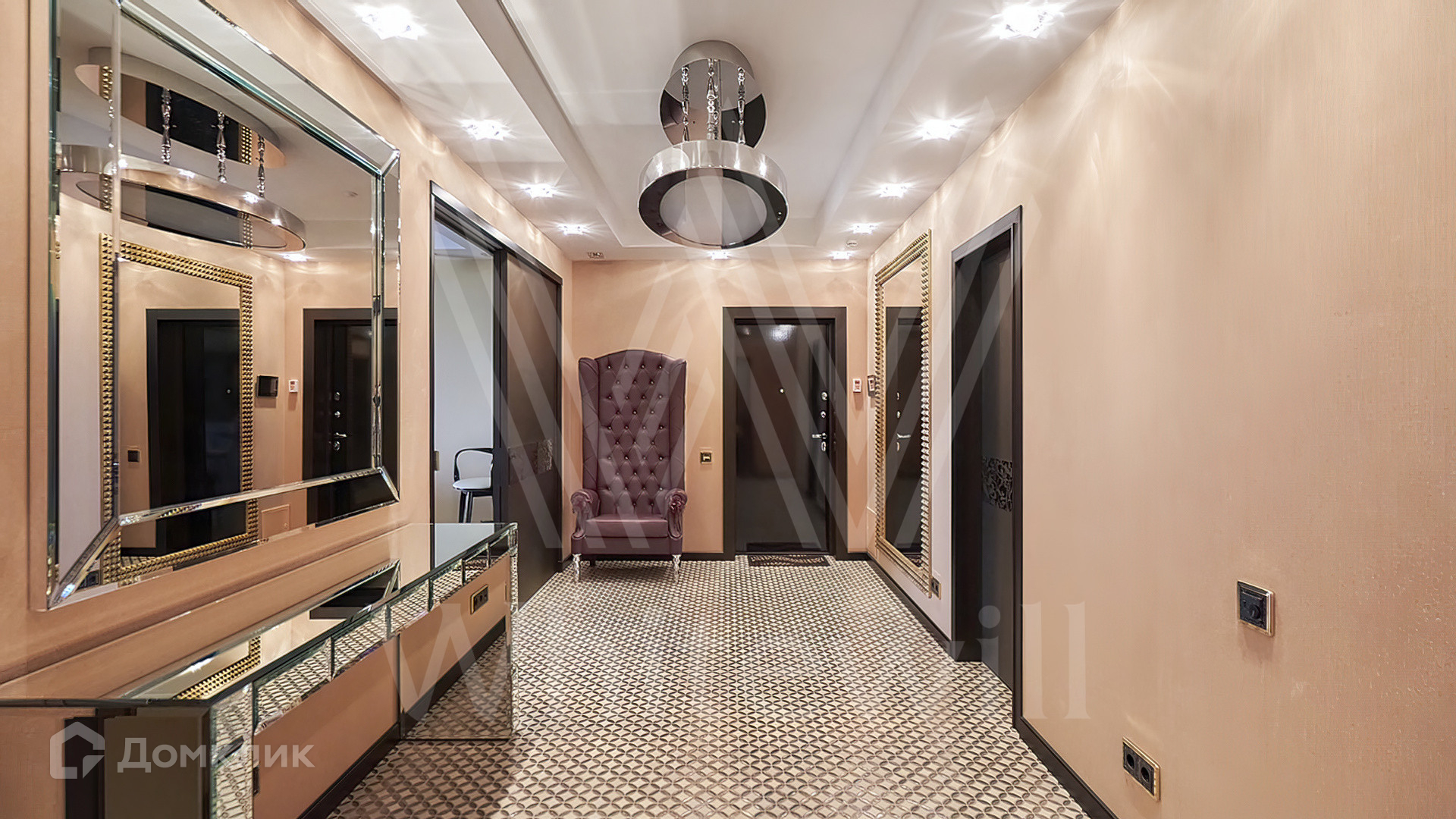 Квартира полностью укомплектована мебелью на заказ от итальянского производителя Roberto Cavalli Home. Кухонная зона огорожена стеклянной перегородкой и оборудована бытовой техникой Gaggenau. Дизайнерские люстры и светильники, мозаика от Sicis и эксклюзивные элементы декора создают в интерьере атмосферу уюта и уникальности. Функциональная планировка включает кухню-гостиную, мастер-спальню с собственной ванной комнатой и выходом на балкон, вторую спальню, гостевой санузел и холл. Благодаря панорамным окнам пространство наполнено светом и теплом, открываются виды на тихий зеленый двор.