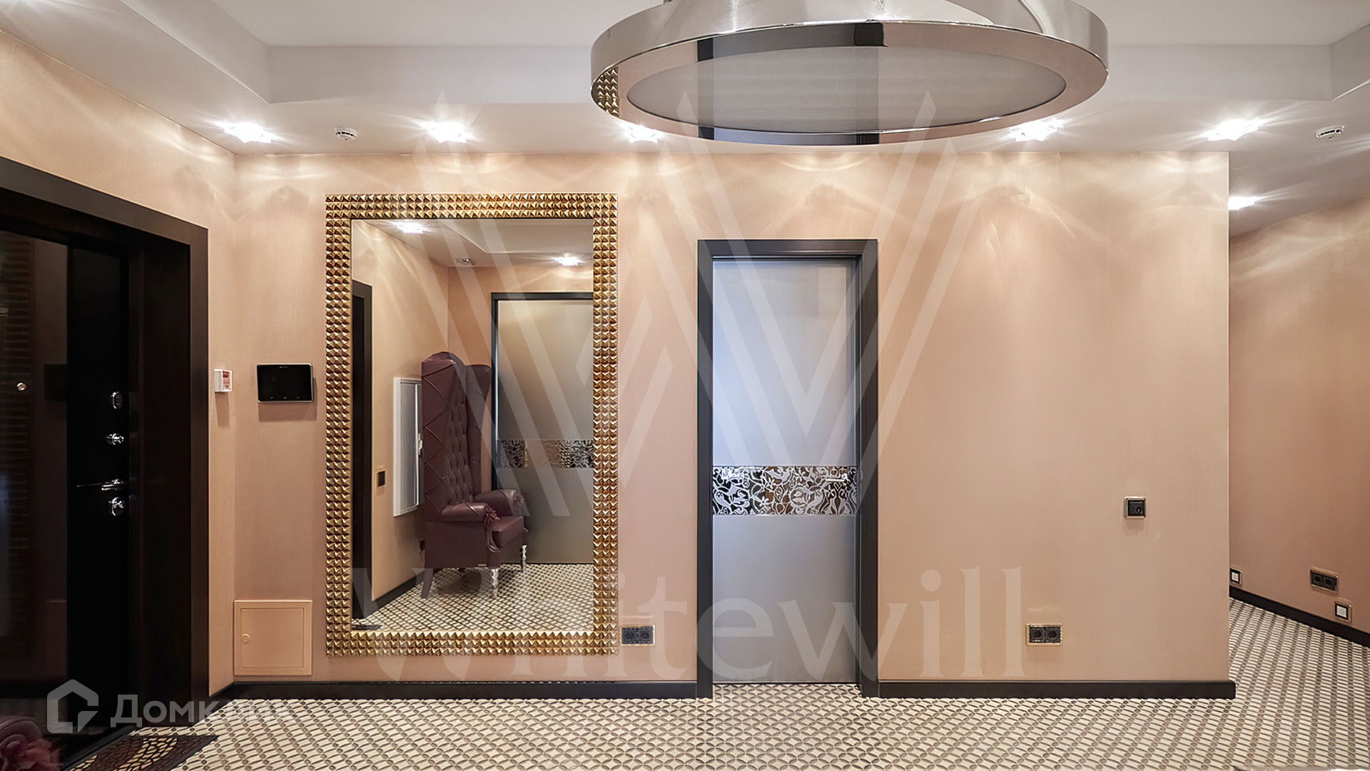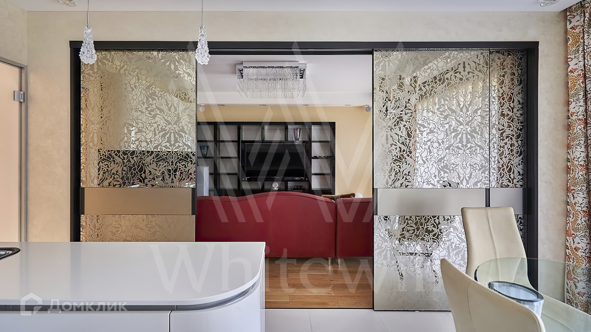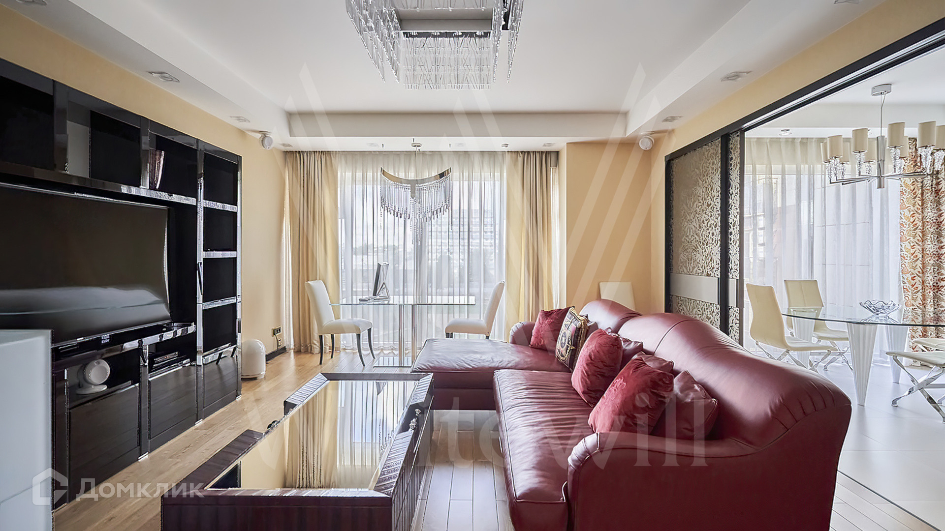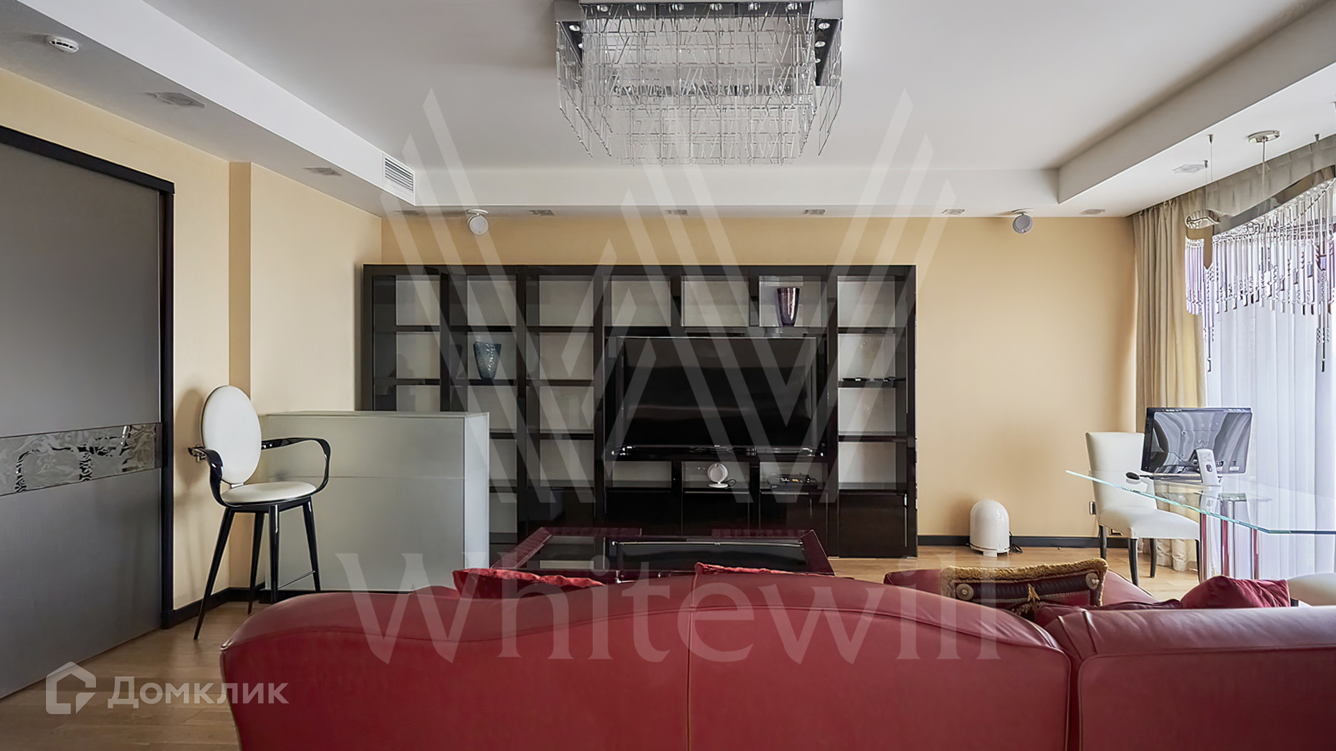 Квартира полностью укомплектована мебелью на заказ от итальянского производителя Roberto Cavalli Home. Кухонная зона огорожена стеклянной перегородкой и оборудована бытовой техникой Gaggenau. Дизайнерские люстры и светильники, мозаика от Sicis и эксклюзивные элементы декора создают в интерьере атмосферу уюта и уникальности. Функциональная планировка включает кухню-гостиную, мастер-спальню с собственной ванной комнатой и выходом на балкон, вторую спальню, гостевой санузел и холл. Благодаря панорамным окнам пространство наполнено светом и теплом, открываются виды на тихий зеленый двор.