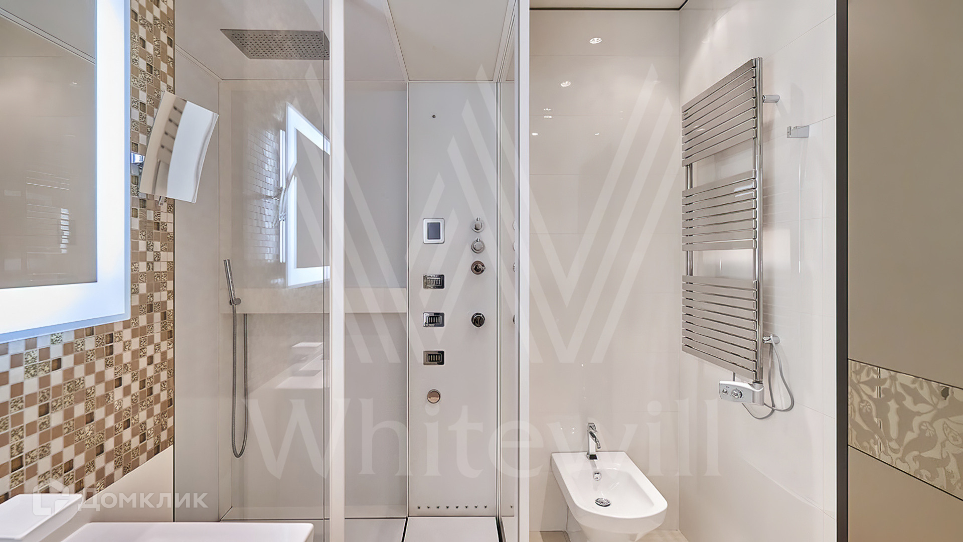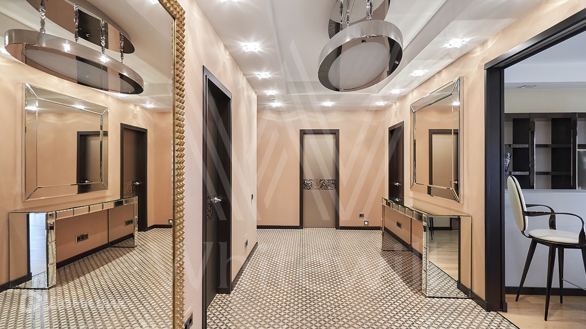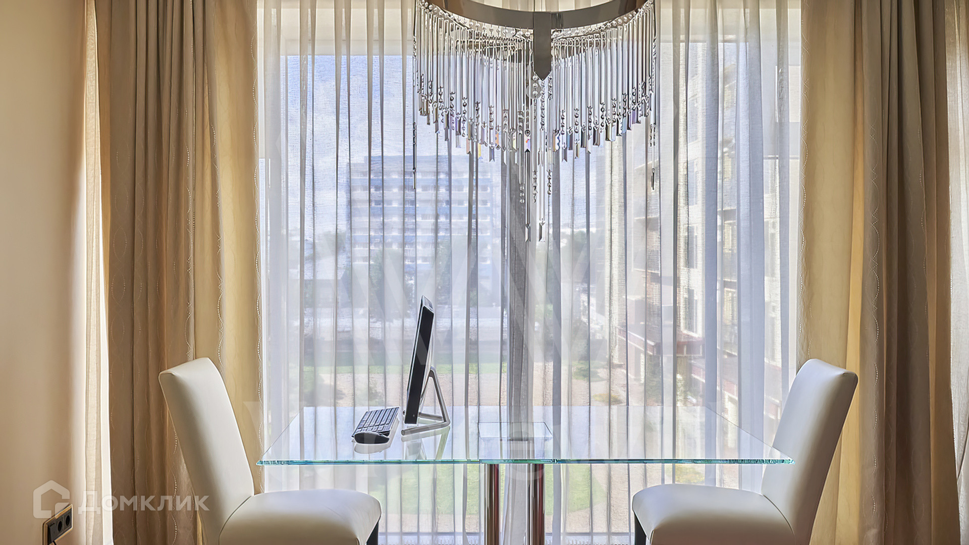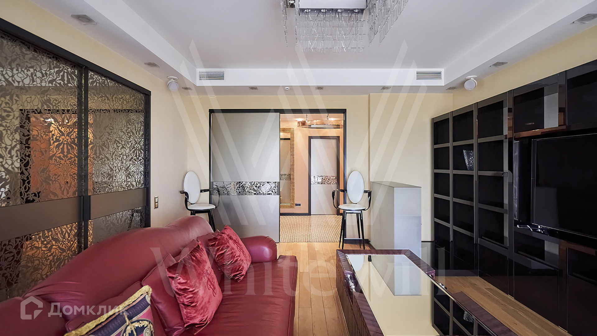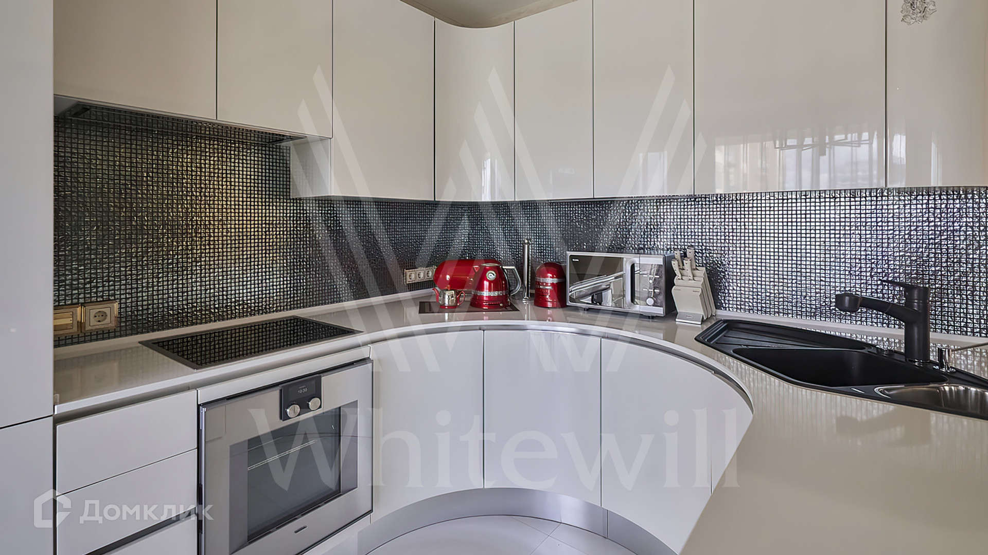 Квартира полностью укомплектована мебелью на заказ от итальянского производителя Roberto Cavalli Home. Кухонная зона огорожена стеклянной перегородкой и оборудована бытовой техникой Gaggenau. Дизайнерские люстры и светильники, мозаика от Sicis и эксклюзивные элементы декора создают в интерьере атмосферу уюта и уникальности. Функциональная планировка включает кухню-гостиную, мастер-спальню с собственной ванной комнатой и выходом на балкон, вторую спальню, гостевой санузел и холл. Благодаря панорамным окнам пространство наполнено светом и теплом, открываются виды на тихий зеленый двор.