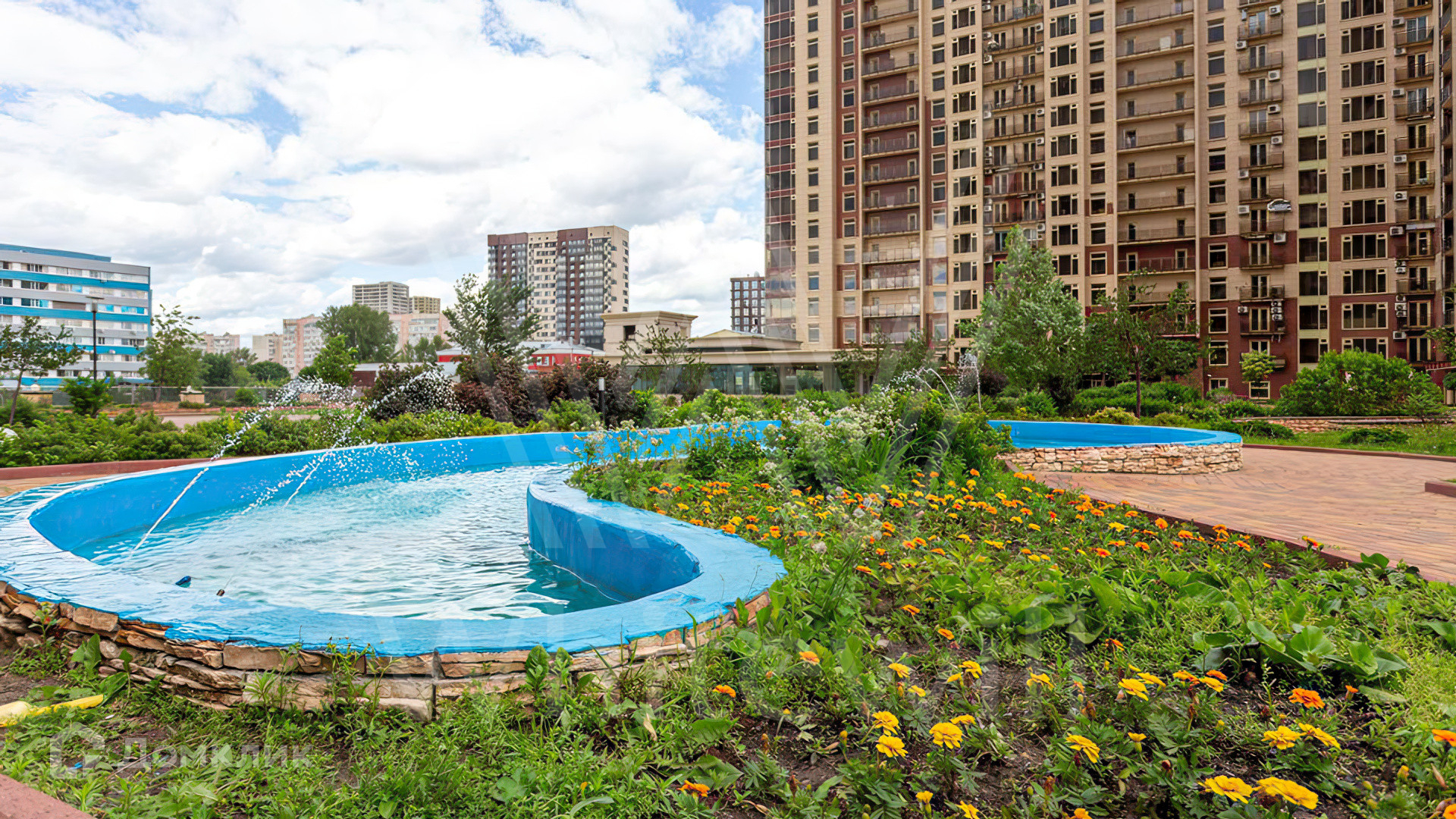 На приватной территории двора организован сквер с ландшафтным дизайном, фонтами, зонами отдыха со скамейками. Для юных жителей оборудована детская площадка. Для автовладельцев предусмотрена трехуровненая подземная парковка на 1377 мест, гостевой наземный паркинг и автомойка. Помещения на нижних этажах предназначены для коммерческих целей, здесь расположены детский сад, фитнес-клуб, супермаркет, аптека, кафе и рестораны.