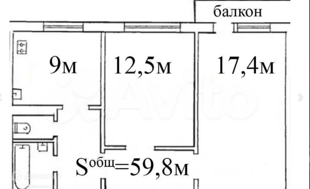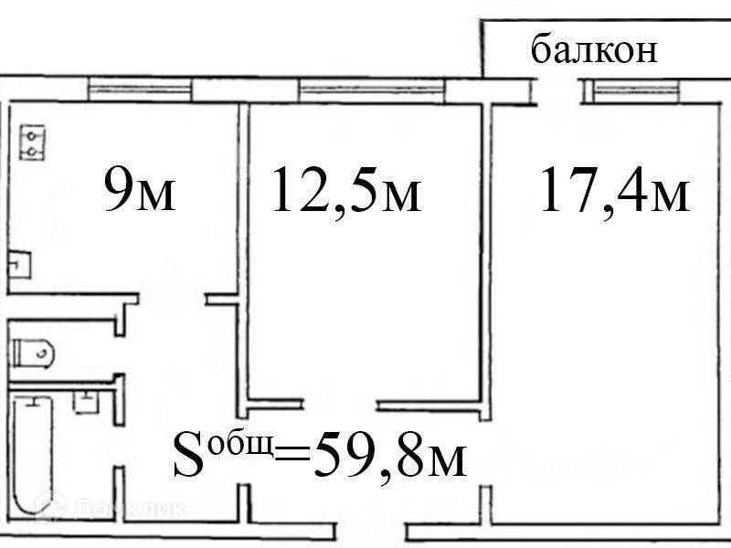 Общая площадь 59 м2