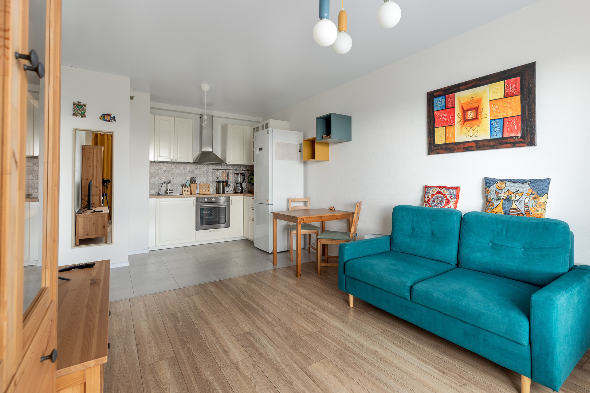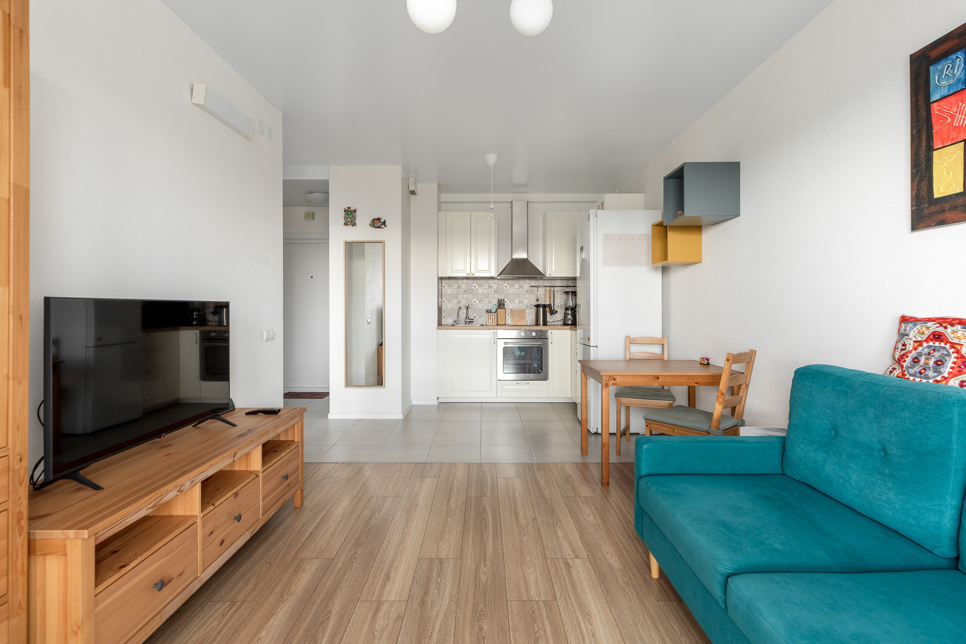 В продажу предлагается уютная благоустроенная квартира формата евро-двухкомнатная - спальня 11м.кв+кухня-гостиная 18,1 м.кв. Продается со всей мебелью и техникой.