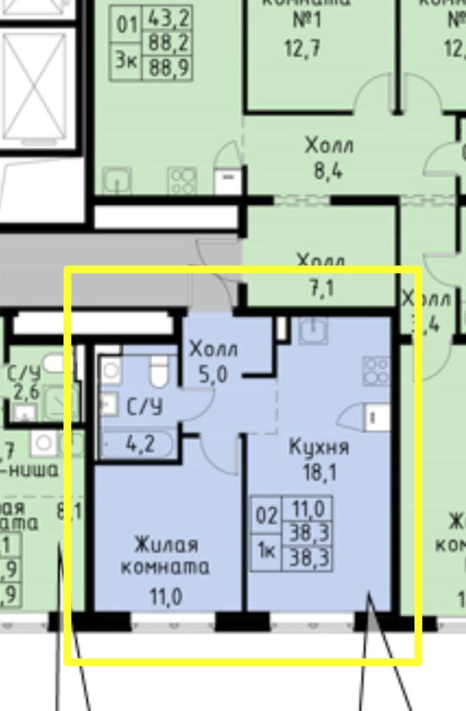 Общая площадь 38.2 м2