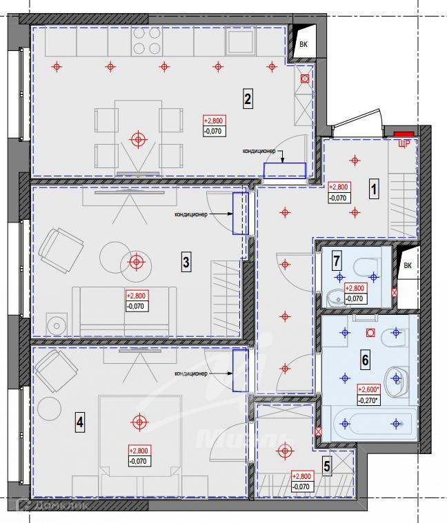 Высота потолков 2.9 м