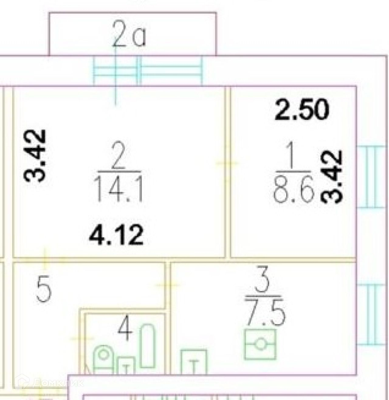Общая площадь 37.6 м2