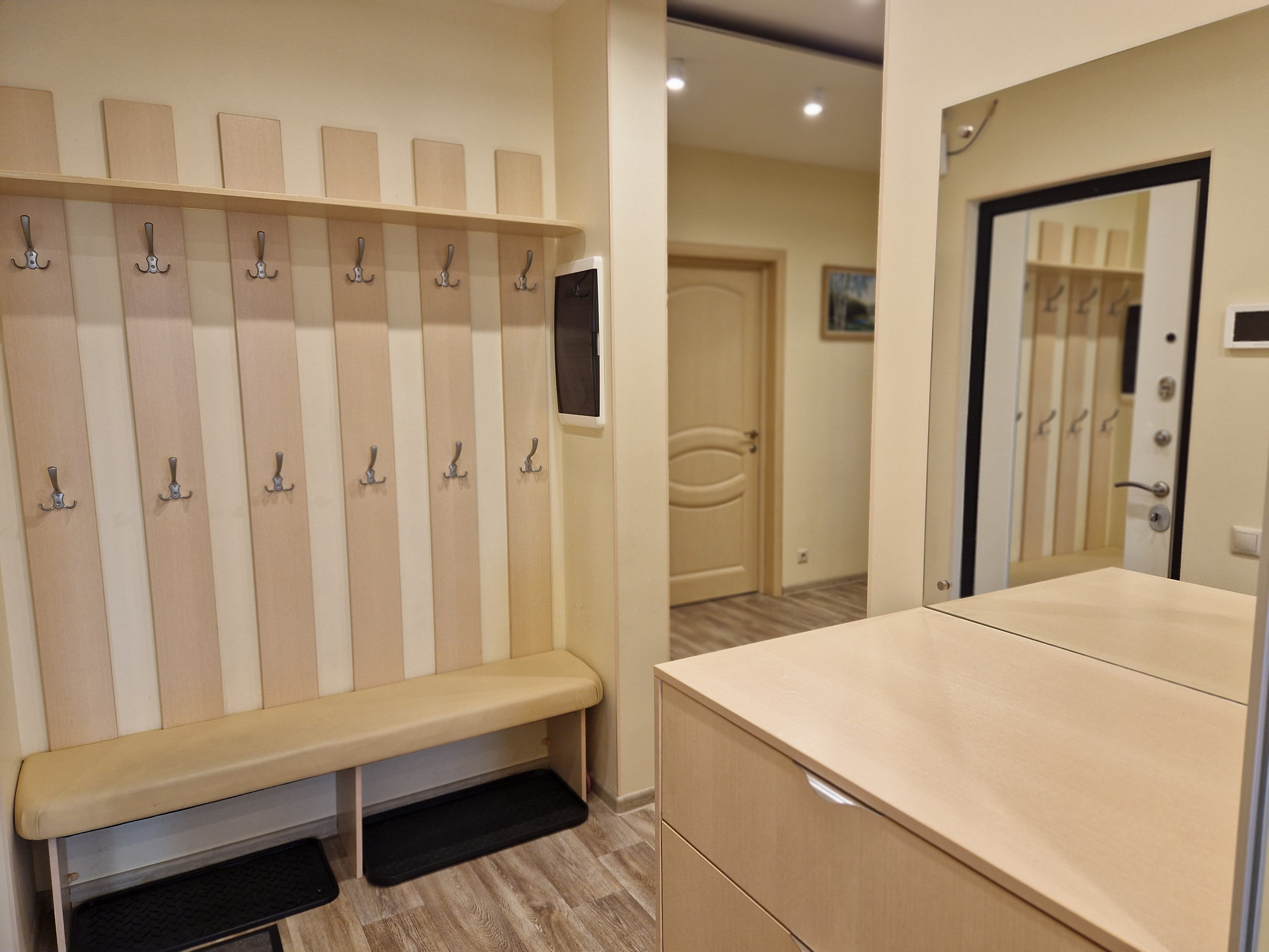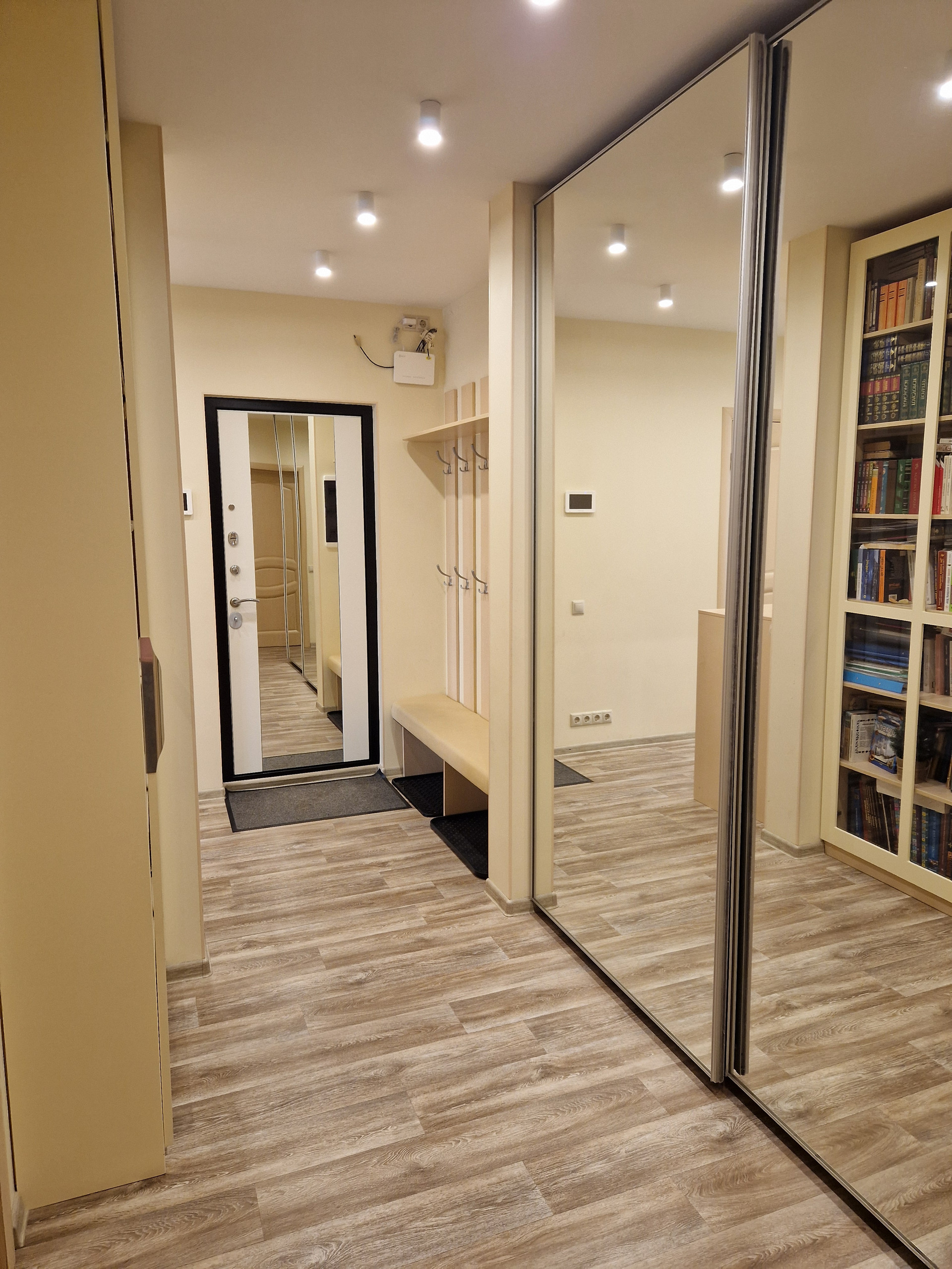 Светлая трехкомнатная квартира с двумя санузлами, все комнаты раздельные, большое количество мест для хранения, свежий ремонт с мебелью и встроенной бытовой техникой, включая 2 холодильника, во всех комнатах и на кухне установлены кондиционеры, есть большой приквартирный холл. В подъезде и на этаже в этом году сделан косметический ремонт, а также в этом году выполнен капитальный ремонт труб ГВС, ХВС и канализиции. Дом ЖСК, вокруг дома детские сады, много мест для парковки.