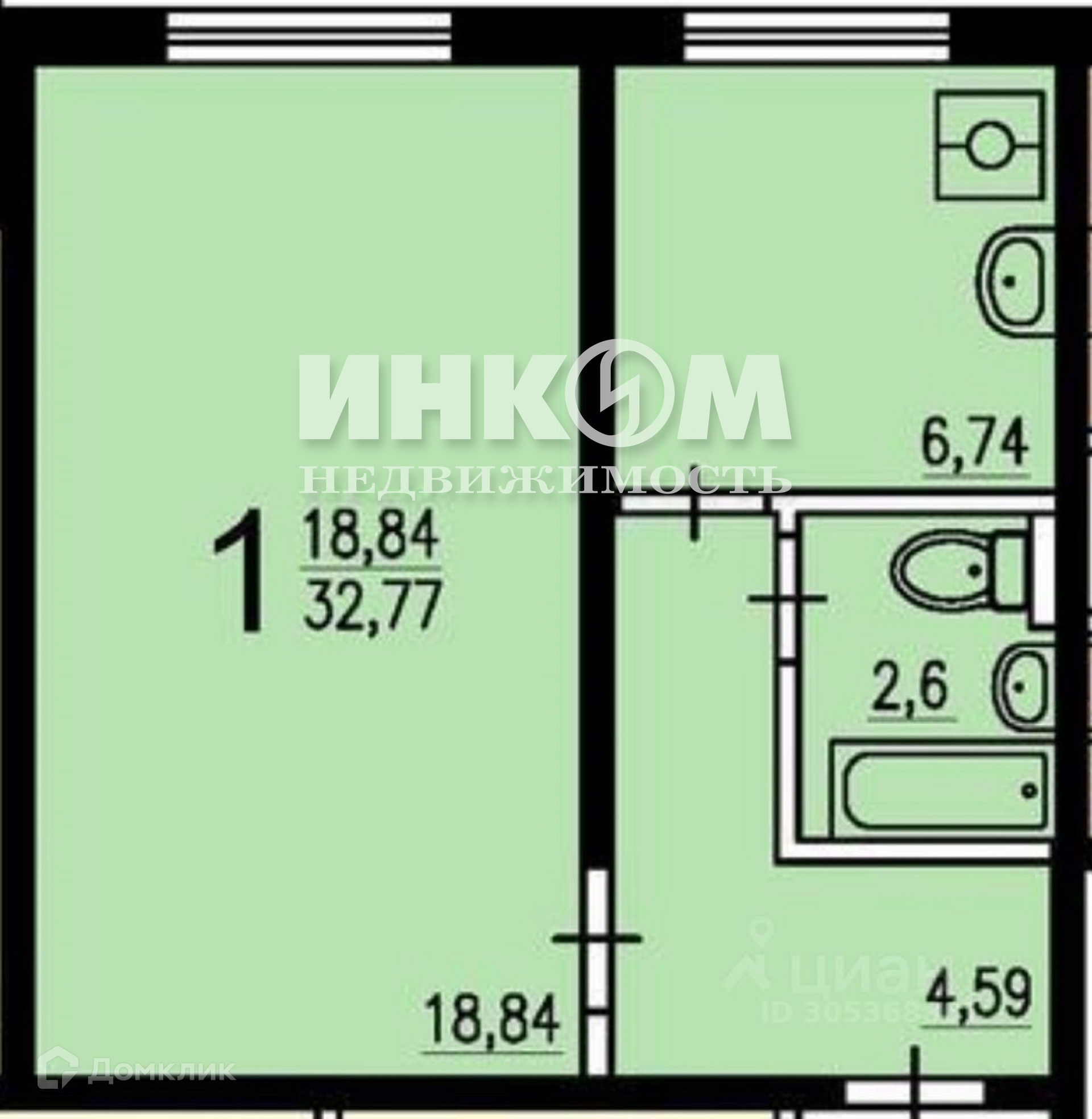 Общая площадь 32.3 м2