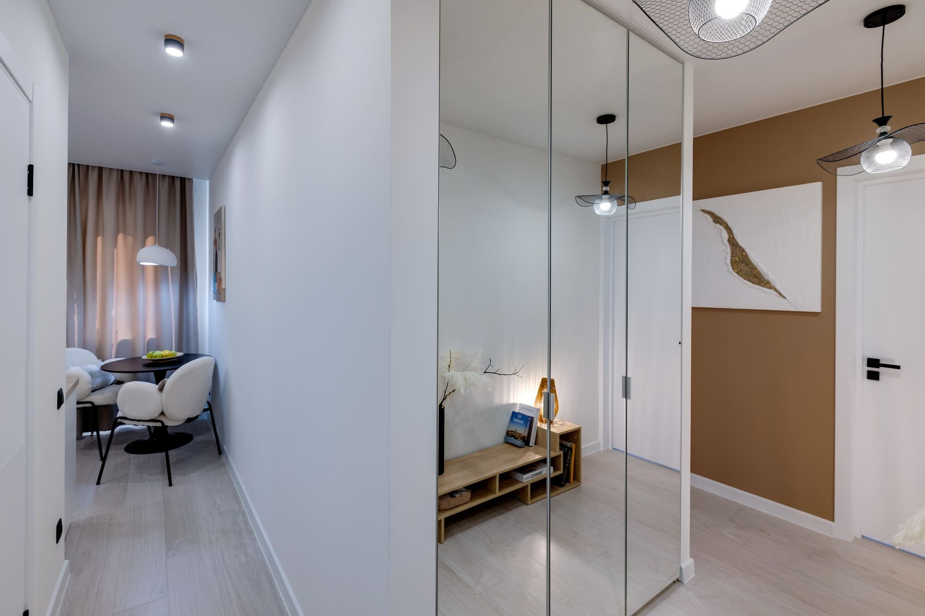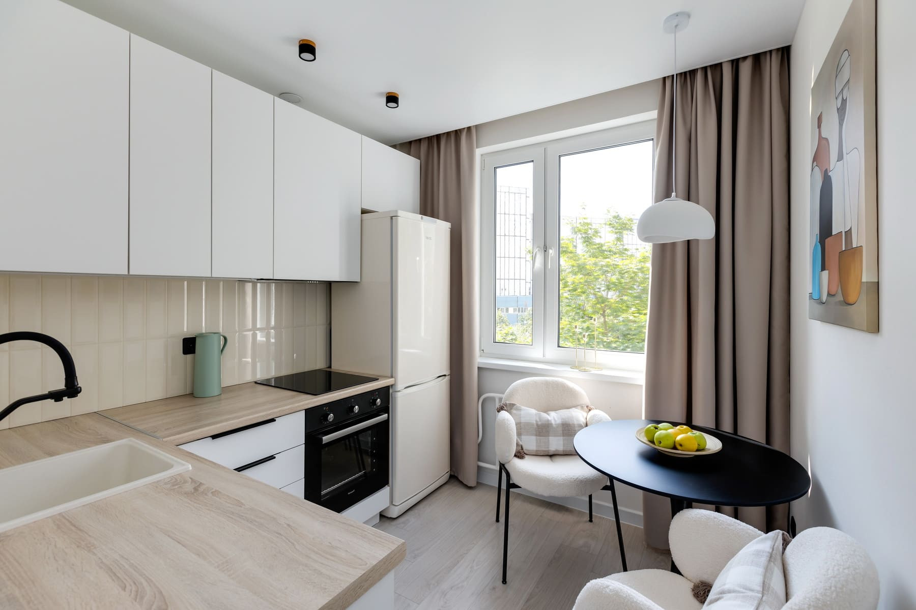 Квартира восхищает своим стилем и элегантностью, интерьер выполнен в благородных цветах, дополненными изящными цветовыми акцентами. Общая площадь 45 кв.м плюс утепленная застекленная лоджия – 6 кв. м. Грамотная планировка: просторная уединенная спальня с двуспальной кроватью с подъемным механизмом и выходом на светлую большую лоджию с теплым полом, уютная кухня укомплектована современной техникой (посудомойка, варочная панель, духовой шкаф, холодильник, вытяжка), совмещенный, дизайнерский санузел с ванной, гостиная или детская с раскладывающимся диваном и ТВ зоной. Маленькая комната может с легкостью трансформироваться в детскую. Грамотно организованы зоны хранения - установлены большие встроенные шкафы в прихожей и вместительная гардеробная в спальне.