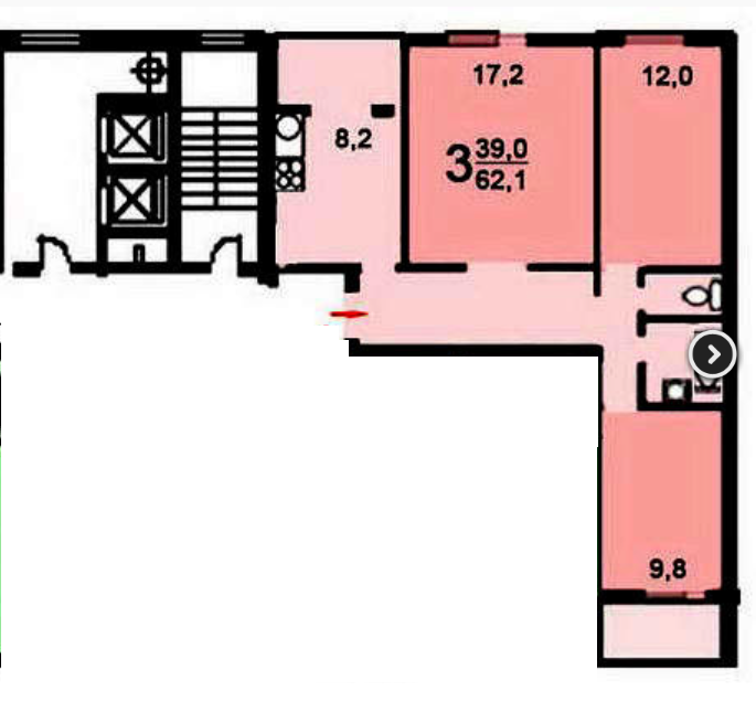 Жилая площадь 39 м2