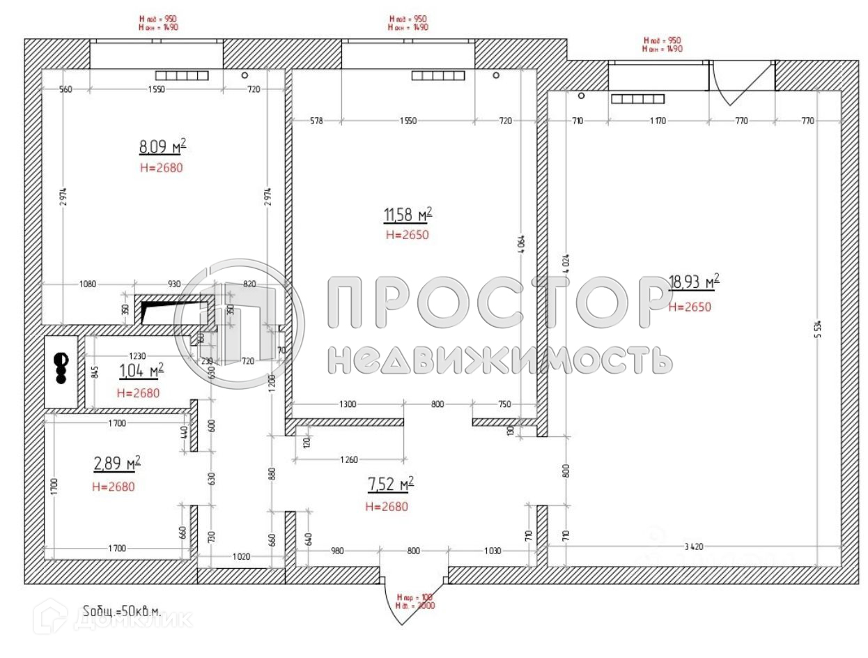 Высота потолков 2.6 м