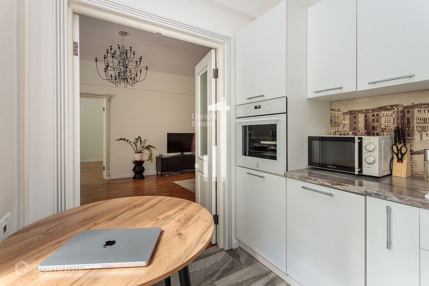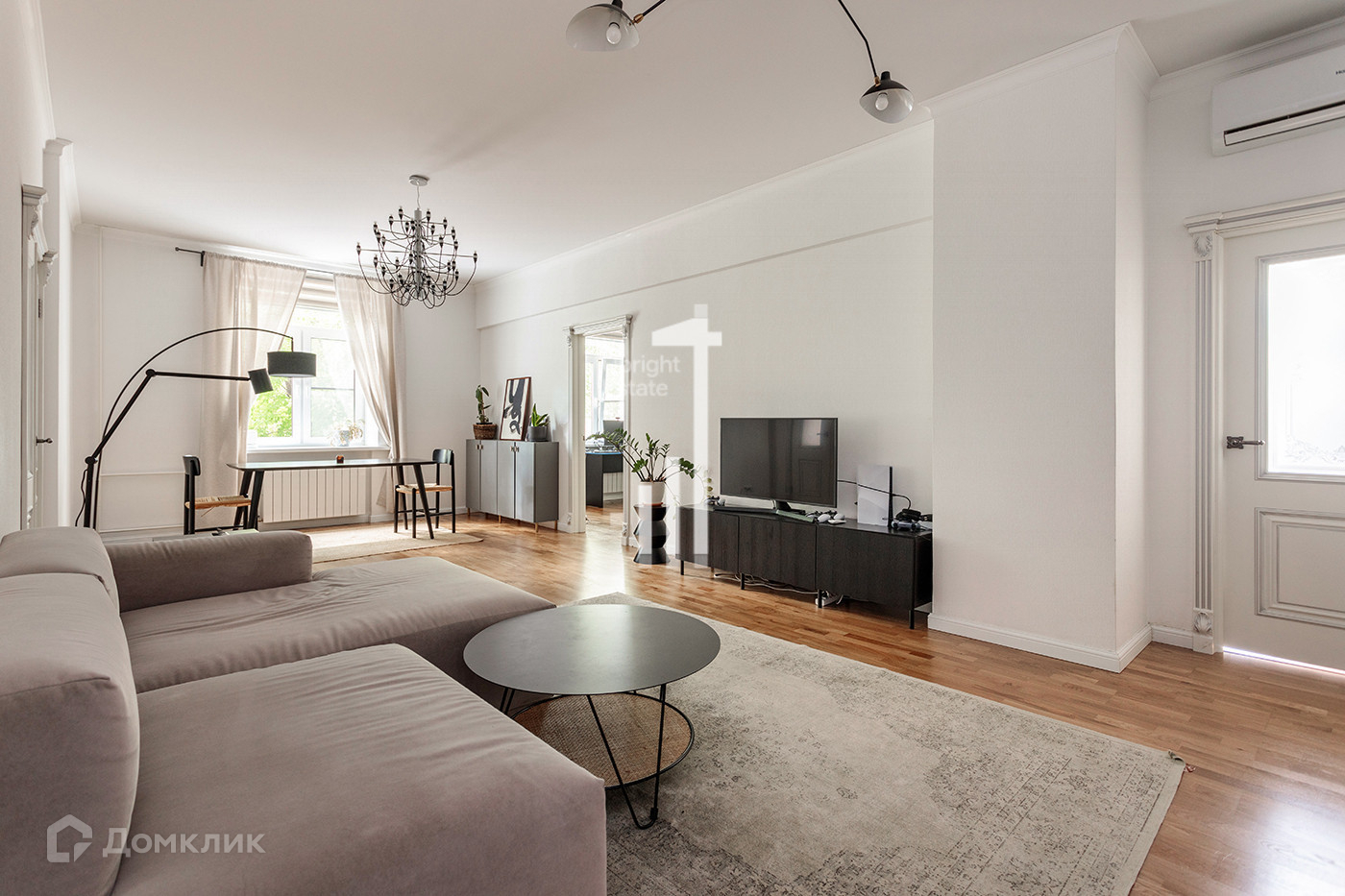 Красивая светлая квартира с качественной отделкой расположена в кирпичном доме 50-ых годов, высокие потолки - 3 метра, удачная планировка.