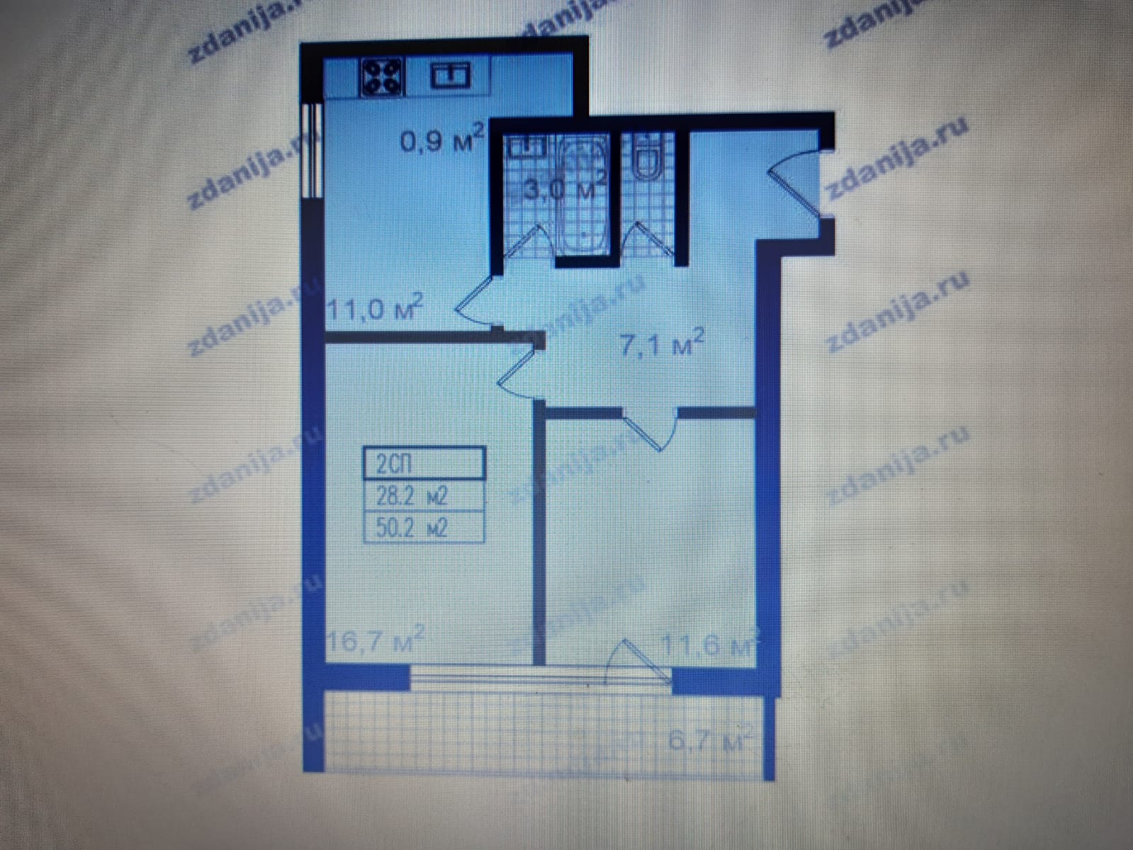 Общая площадь 54 м2