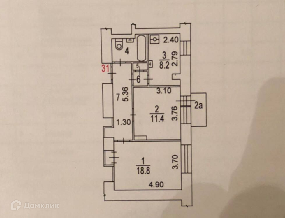 Общая площадь 55.4 м2