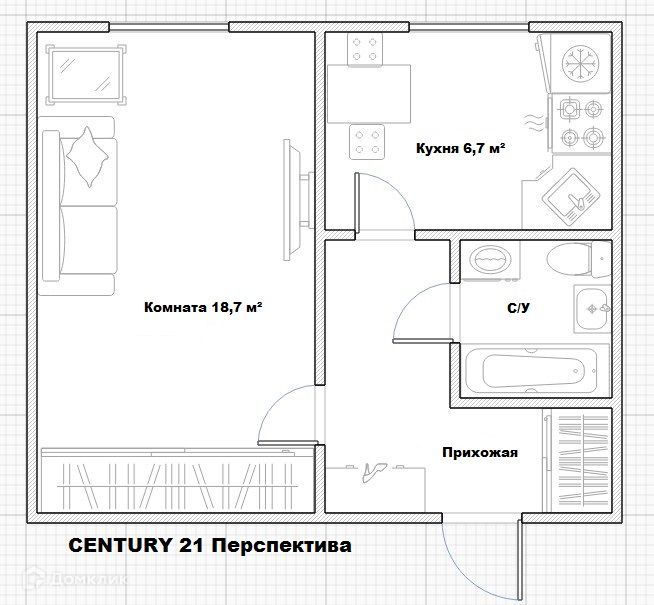 Жилая площадь 18.7 м2