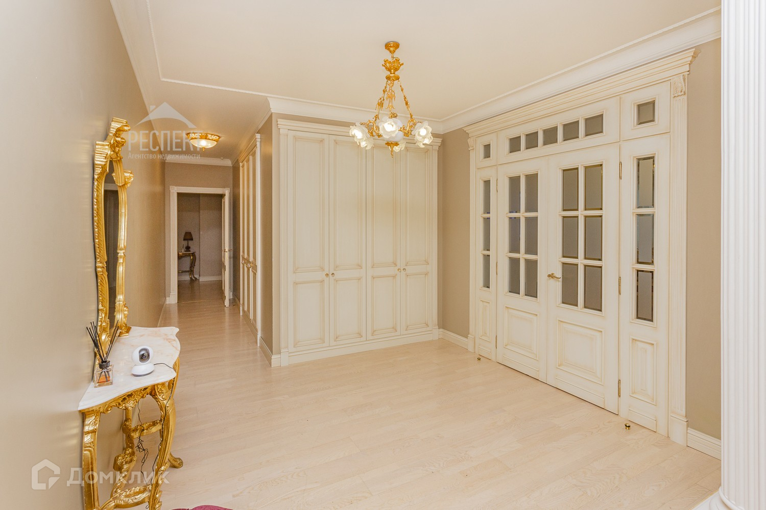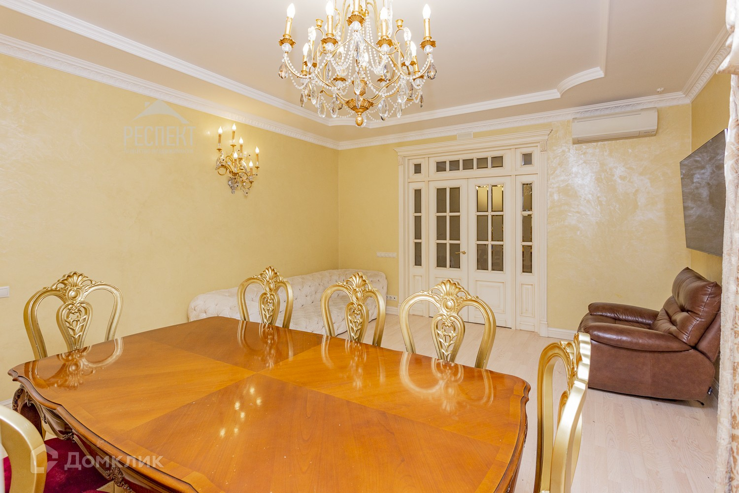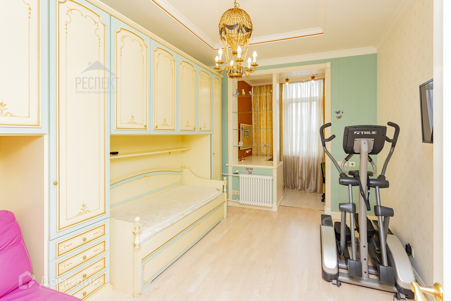 Вашему вниманию предлагается к продаже просторная 4-х комнатная квартира в ЖК Бизнес класса "Крылатские Огни" в 7 минутах ходьбы от метро Крылатское. Квартира с дизайнерским ремонтом в стиле французской классики. Общая площадь квартиры 161.3 кв.м. Отделка квартиры выполнена по индивидуальному проекту с продуманной планировкой. Площадь квартиры делится на две независимые зоны, гостевую зону: холл с прихожей - 20 кв.м, гостиная - зал - 27 кв.м, кухня-столовая - 20 кв.м, спорткомната - 15 кв.м, гостевой санузел - 3.5 кв.м и жилую зону: детская комната с учебной зоной - 18 кв.м, гостевую комнату - 16 кв.м, хозяйскую спальню с гардеробной - 16.5 кв.м, хозяйский санузел - 8 кв.м, прачечная комната, сушилка - 3 кв.м, кладовка - 3 кв.м, лоджия - 3.5 кв.м. Вид из окон открывает панораму Крылатских Холмов и вид на дворовую территорию. Отличительной особенностью этой квартиры является наличие в ней спортивной комнаты с напольным покрытием "искусственный лед". Отделка стен матами с полной шумоизоляцией делают ее удобной как для занятий спортом, так и для активных игр. При желании спорткомнату можно демонтировать, тем самым увеличив площадь гостиной. Квартира меблирована итальянской мебелью, люстрами и предметами интерьера производства Италии и Испании. Бытовая техника премиум класса, кондиционеры в каждой комнате, теплый пол в местах плитки и мрамора. Презентабельная входная группа, закрытая и охраняемая территория ЖК, охрана ЧОП. Круглосуточное видеонаблюдение внутри дома и территории комплекса. Детские площадки, зоны отдыха, гостевой, наземный и подземный паркинг.